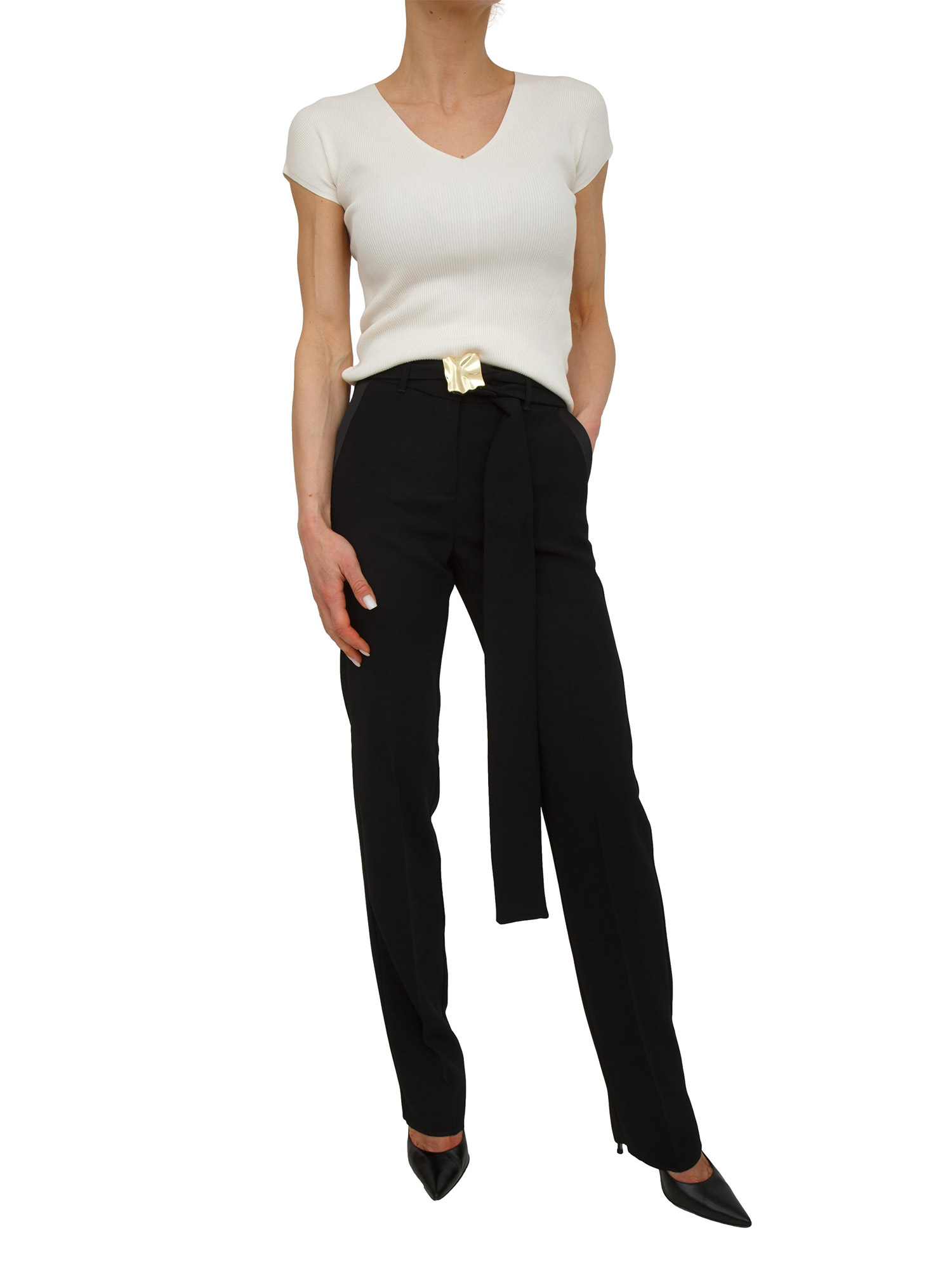 Pantaloni MLTELICA Marella in crêpe envers satin neri
