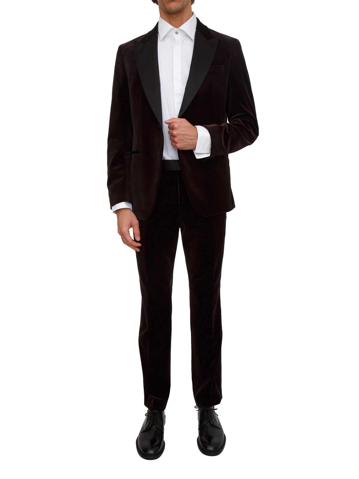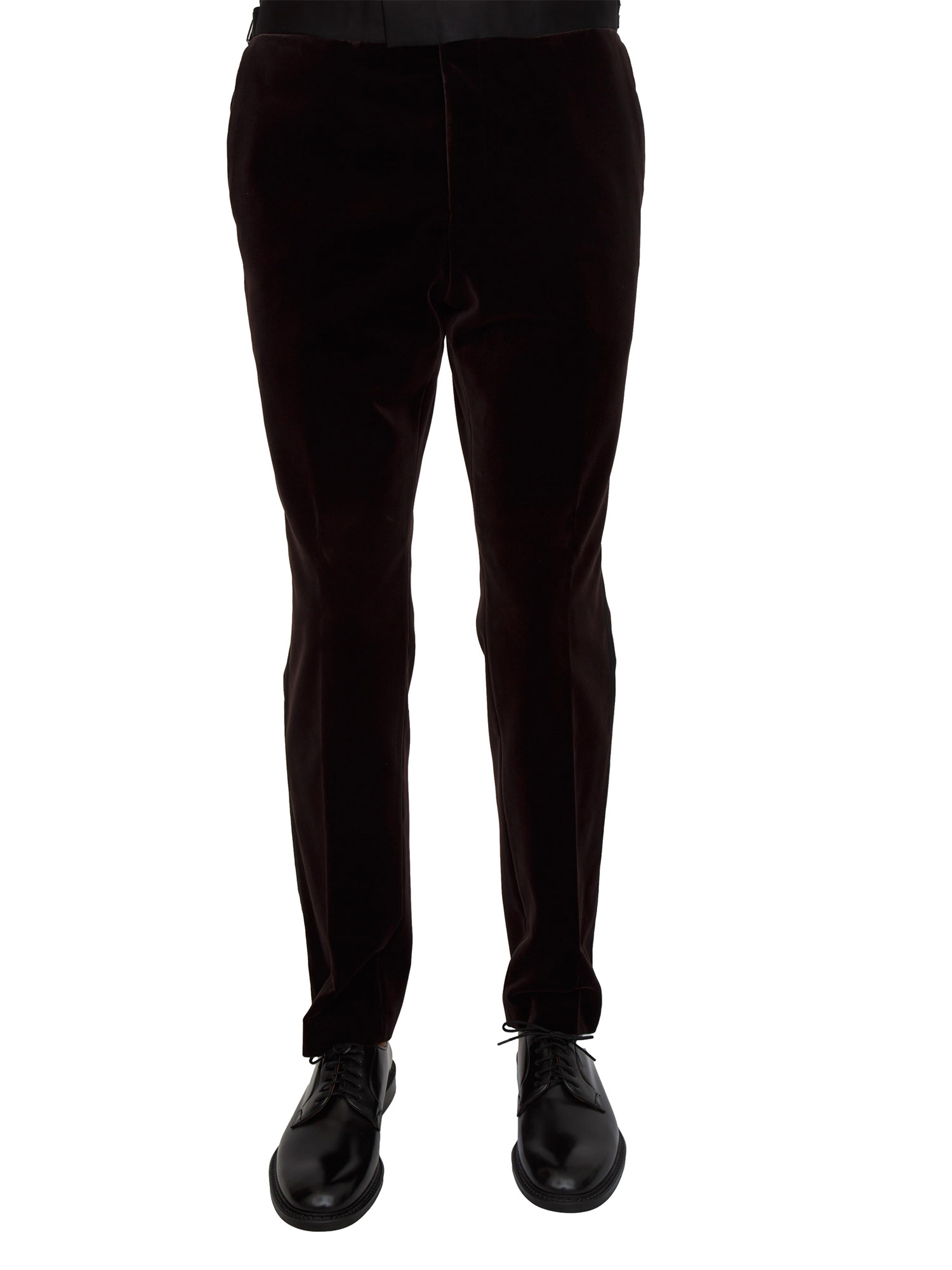 Raffinati pantaloni da smoking BOSS uomo con rifiniture in misto seta. Caratterizzati da una vestibilità slim fit, sono realizzati in velluto di cotone con finitura lucente. Chiusura con gancetto e zip e tasche laterali. Parzialmente foderati. Ideali per i tuoi eventi importanti abbinati alla giacca. Il modello è alto 1.90m e indossa la taglia 50.