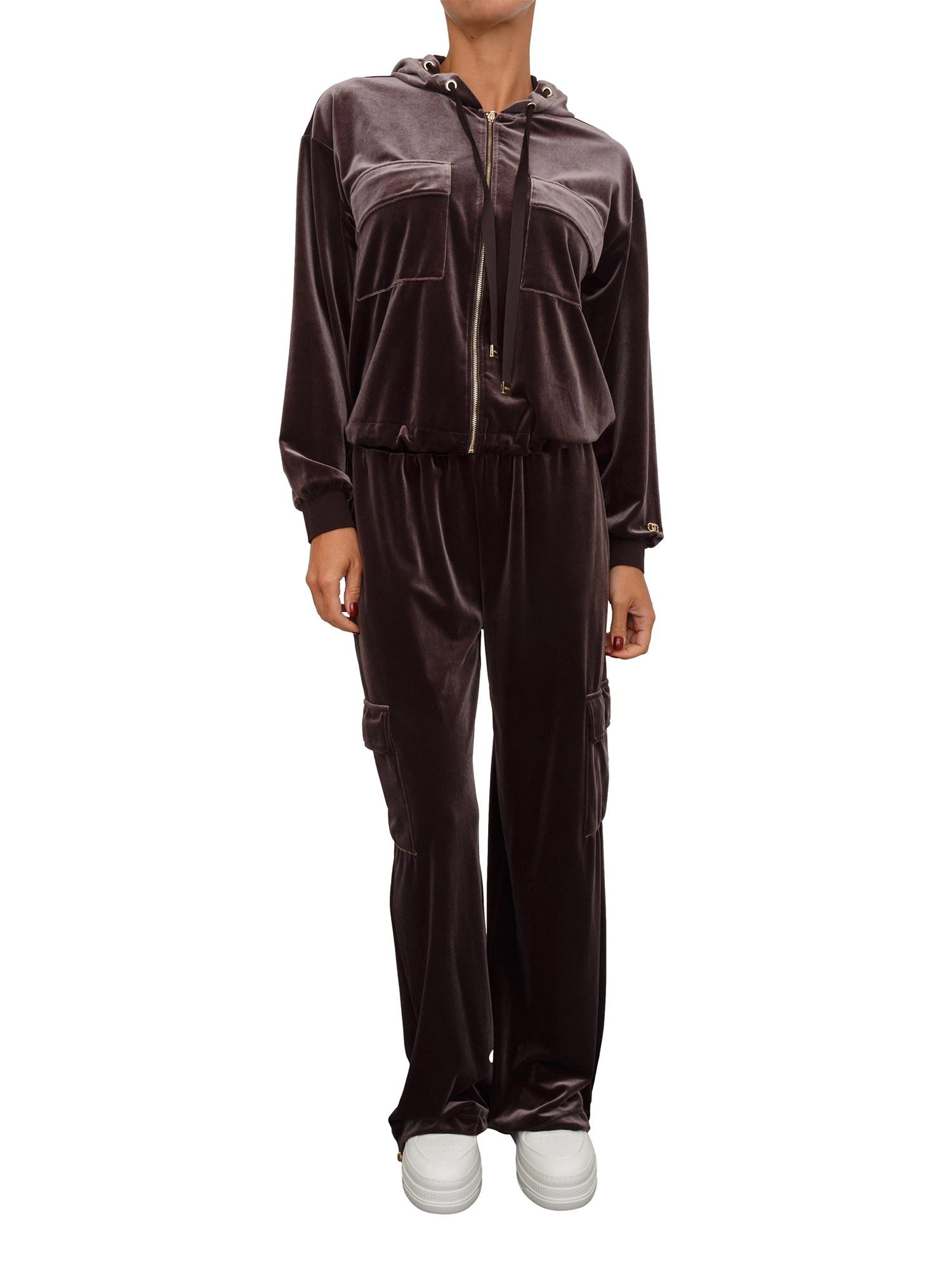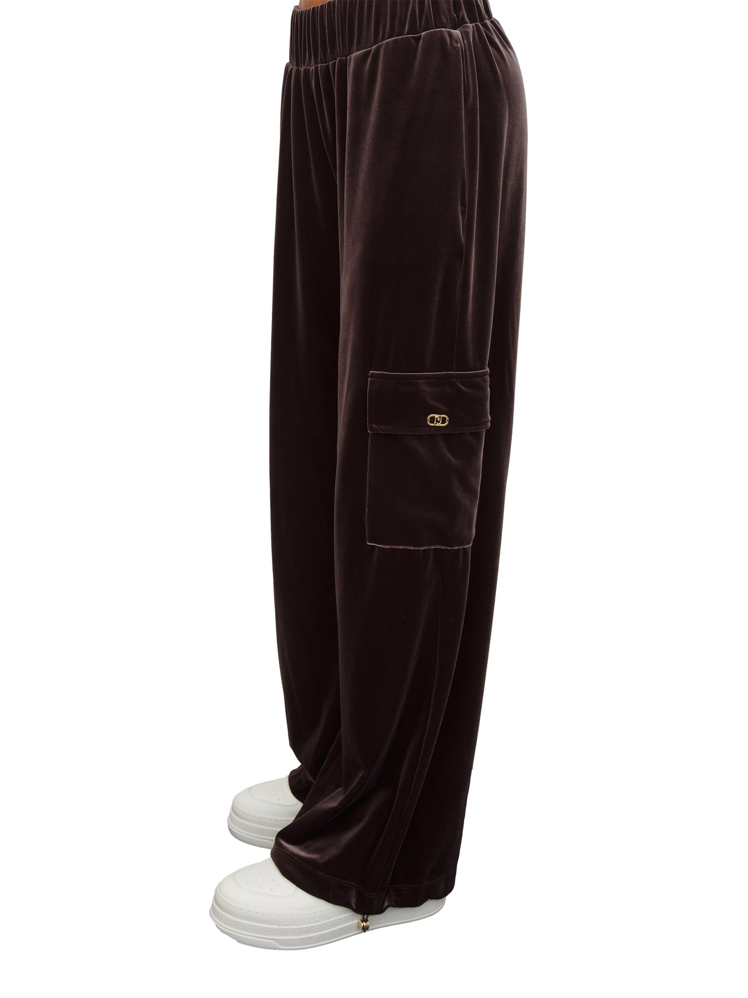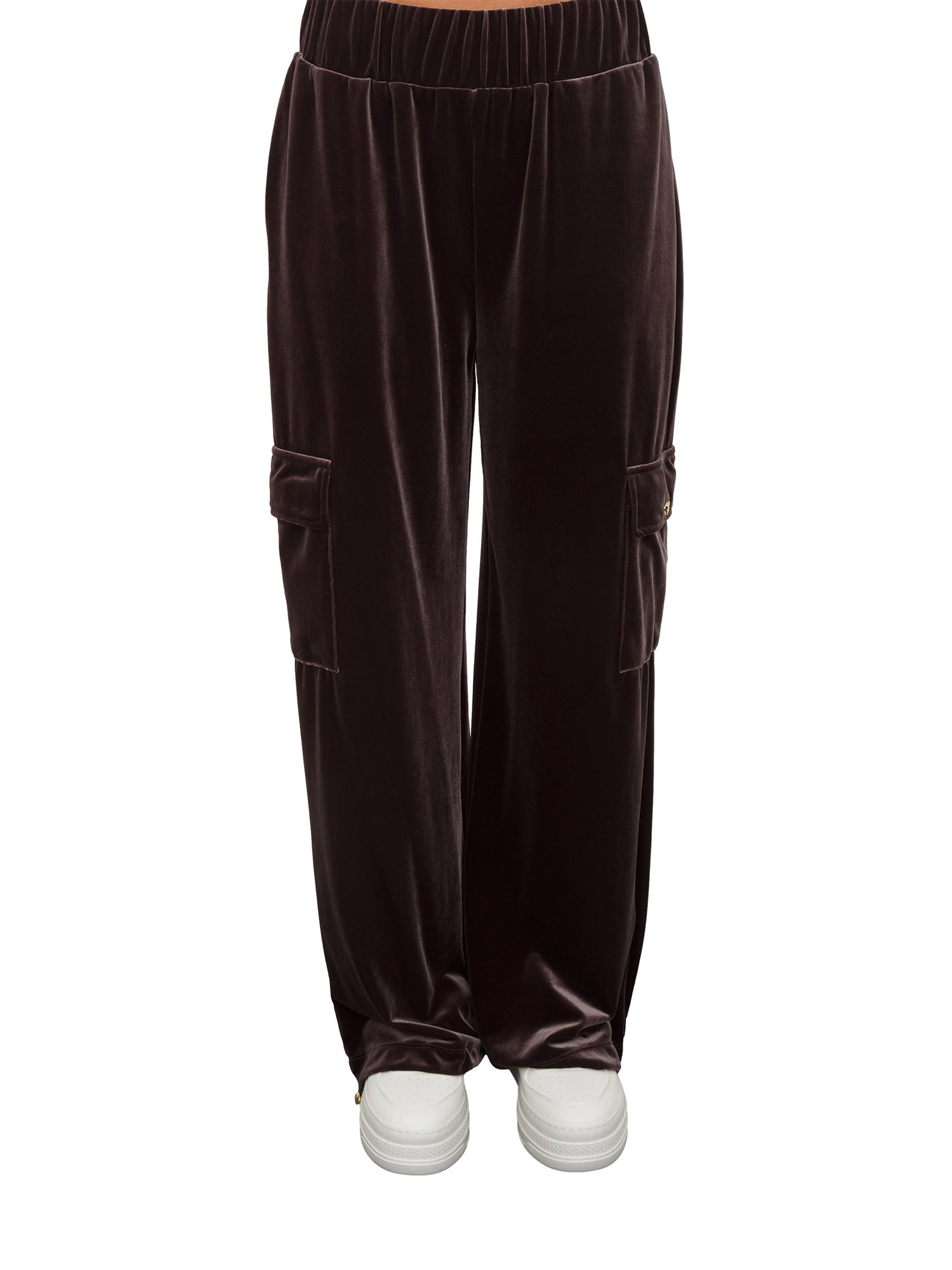 Pantaloni tuta Liu Jo donna in ciniglia stretch marrone con tasche cargo
