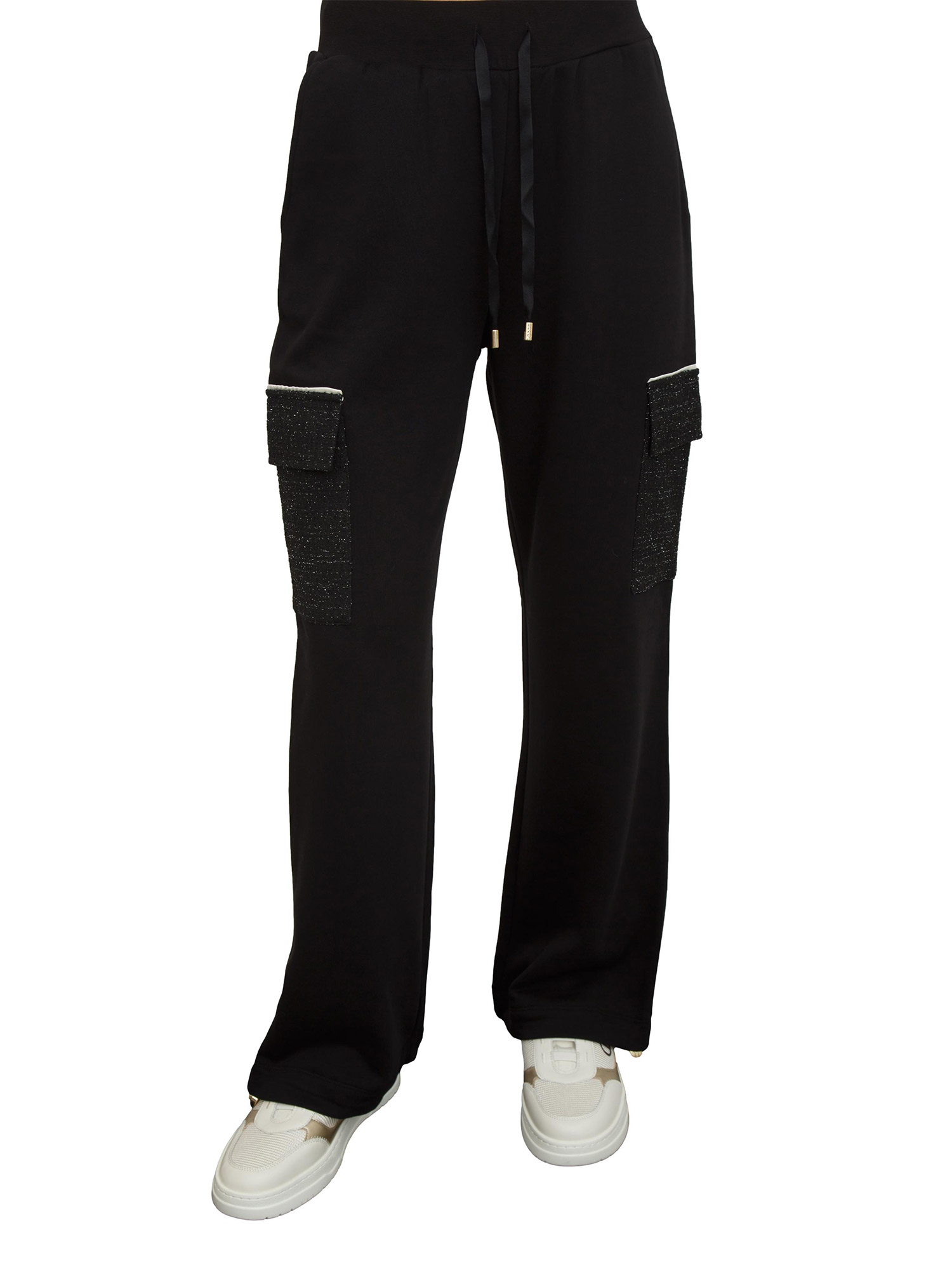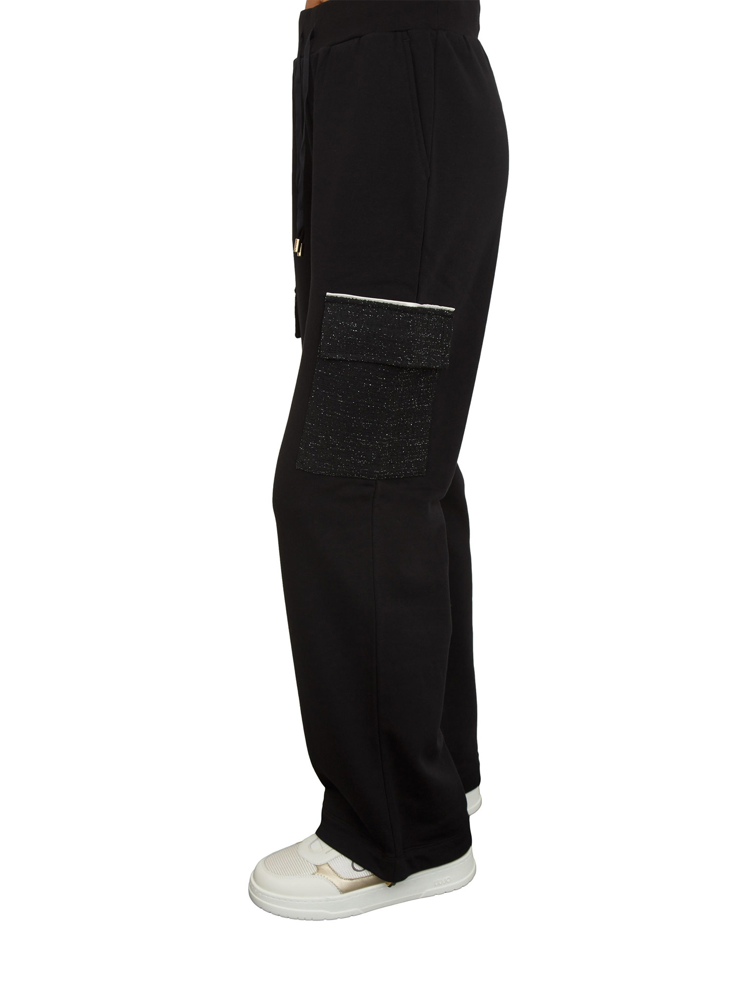 Pantaloni tuta Liu Jo donna in misto cotone nero con tasche lurex