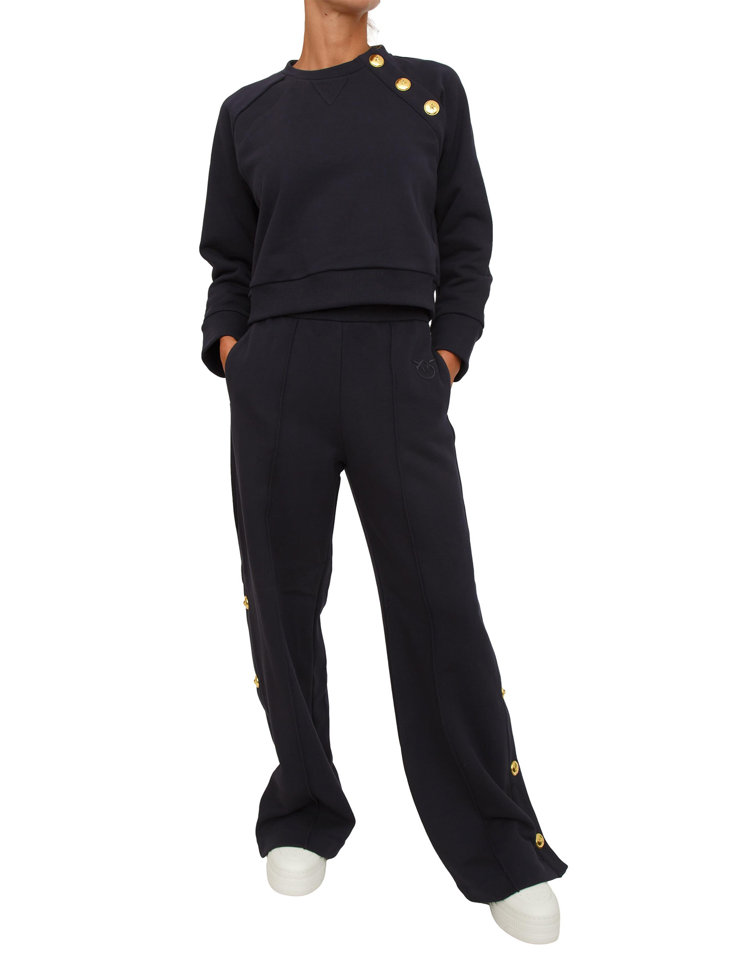 Pantaloni tuta Pinko in cotone blu con bottoni dorati