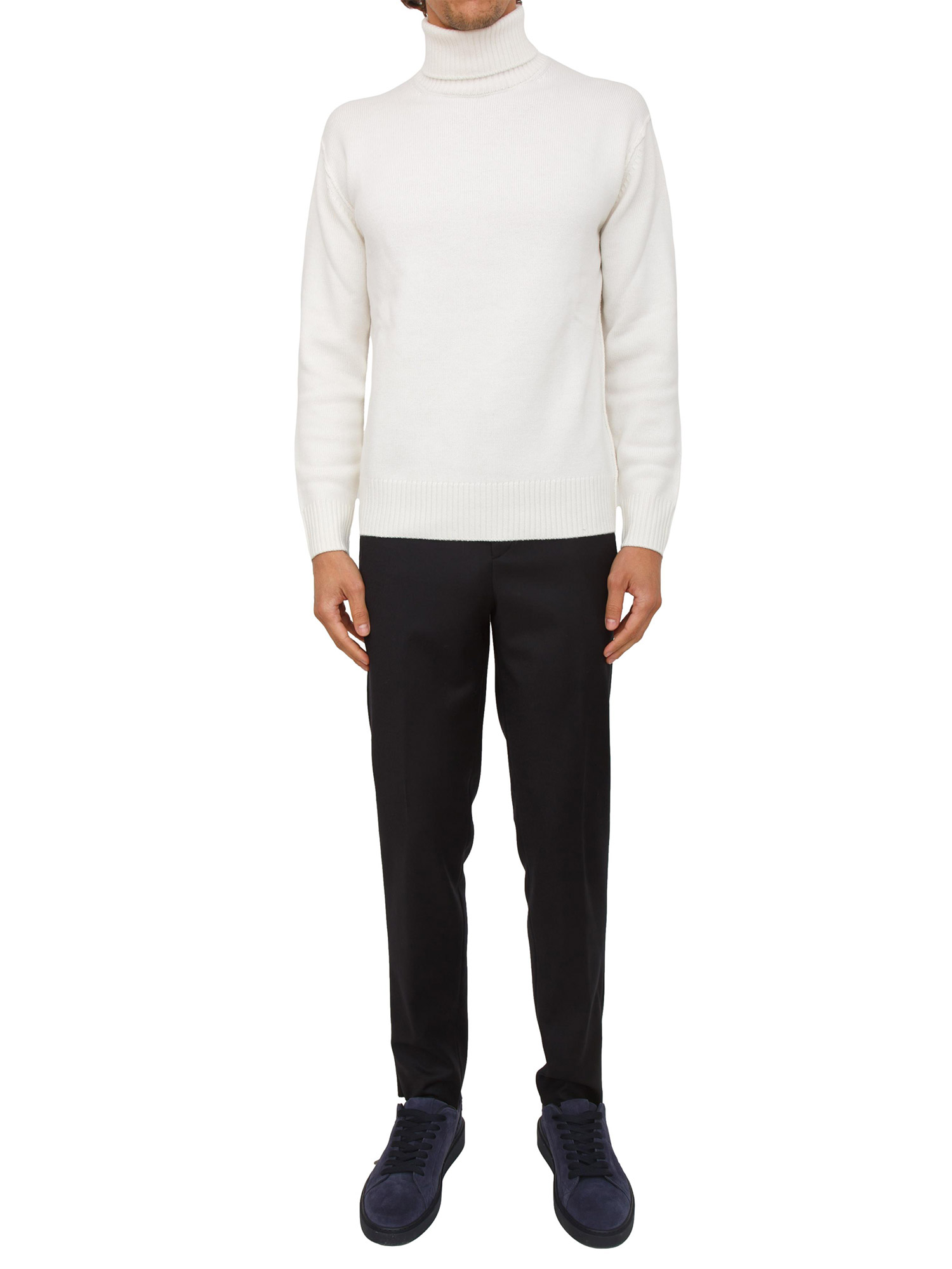 Pantaloni Corneliani in flanella di lana jaspè con vestibilità classica e linea elegante. Allo stesso tempo la sua natura versatile lo rende un passepartout del guardaroba invernale maschile grazie al tessuto dalla mano ultra-soft. Il modello è alto 1.90m e indossa la taglia 46.