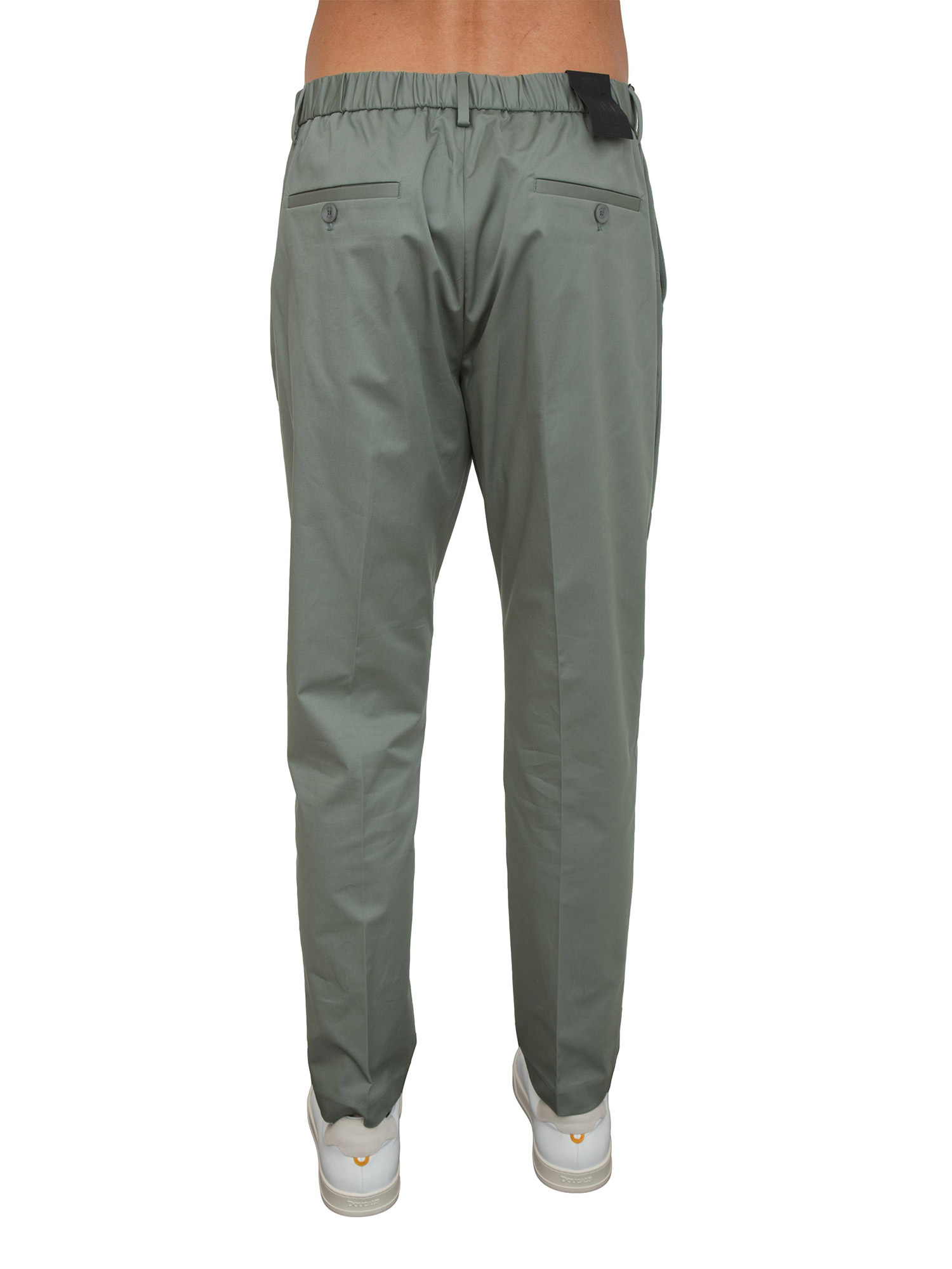 Pantaloni uomo "Julian" di Antony Morato realizzati in twill di cotone e lyocell con vestibilità regular. Design dotato di tasche laterali, tasche a filetto sul retro con elastico in vita dietro e piega stirata. Il modello è alto 1.90m e indossa la taglia 48.