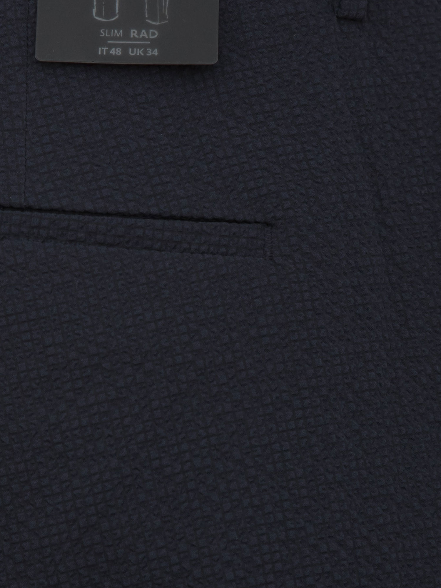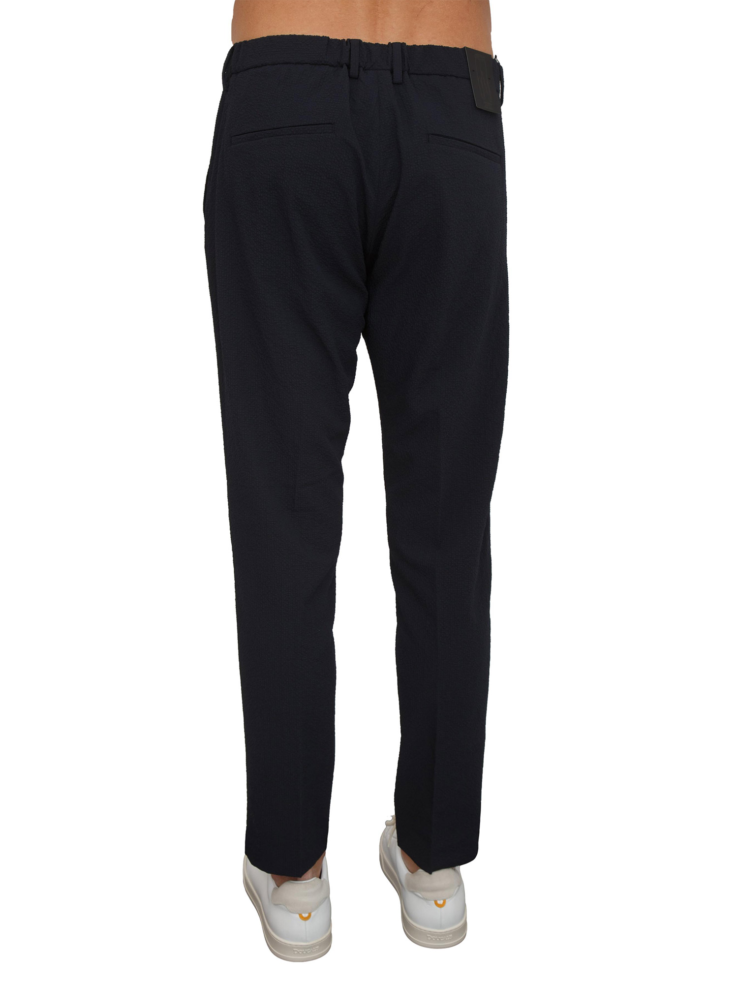 Pantaloni uomo "Rad" Antony Morato realizzati in tessuto tecnico con micro-trama dalla lavorazione materica. Design con vestibilità slim fit ed elastico in vita sul retro. Chiusura asimmetrica con bottone e zip nascosta, tasche laterali e a filetto dietro. Il modello è alto 1.90m e indossa la taglia 48.