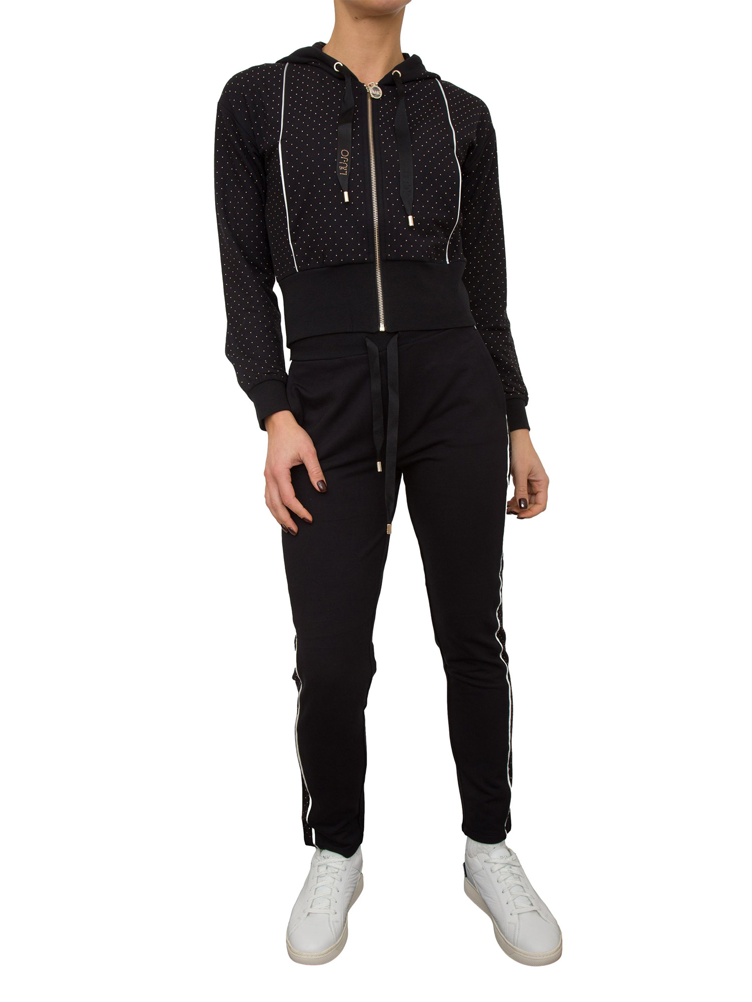Pantaloni tuta donna Liu-Jo in felpa di misto viscosa stretch. Dotati di cintone elastico con coulisse, tasche sui fianchi e logo con strass sul retro. Modello