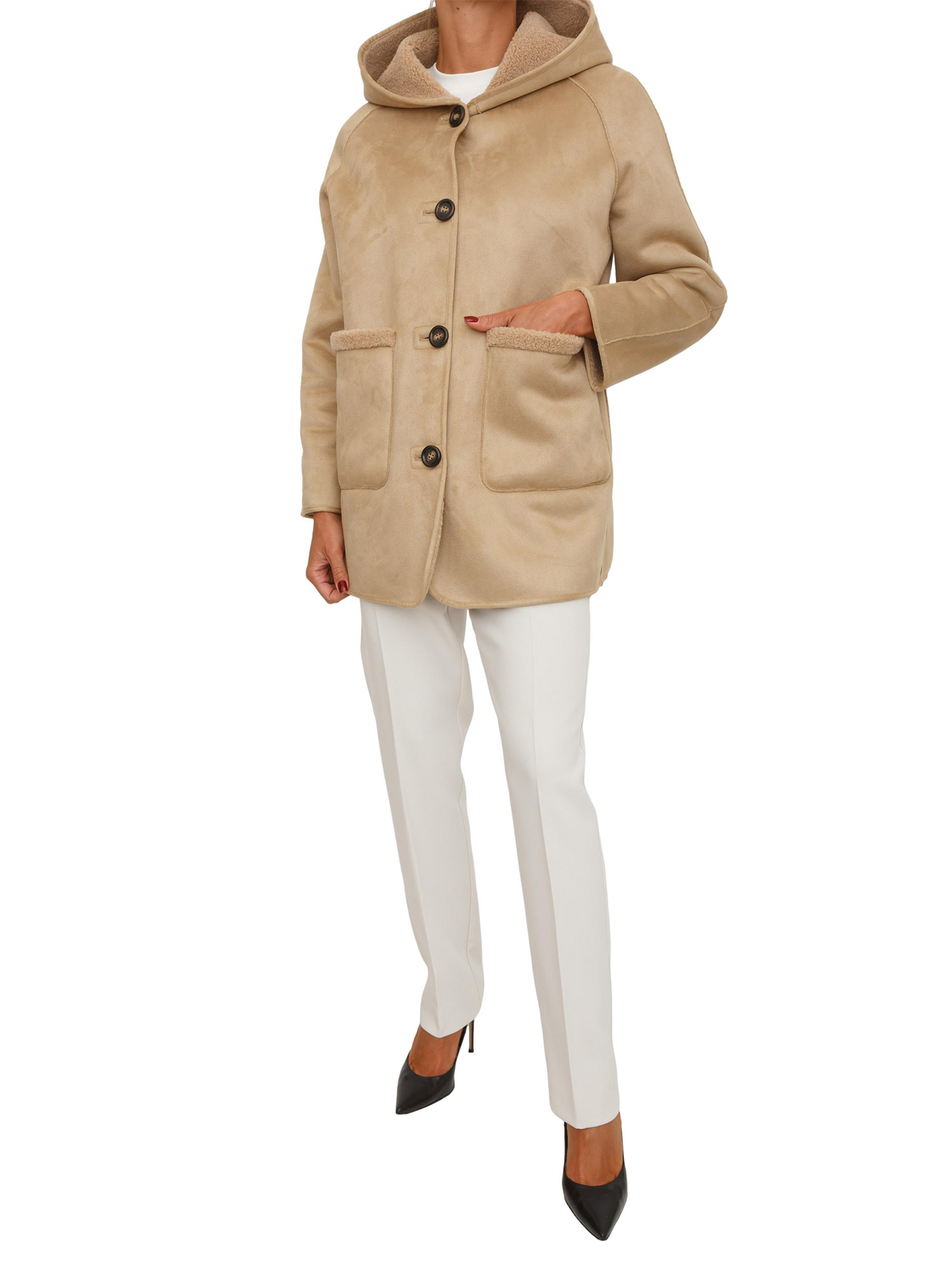 Pelliccia Gavetta Emme Marella beige con cappuccio