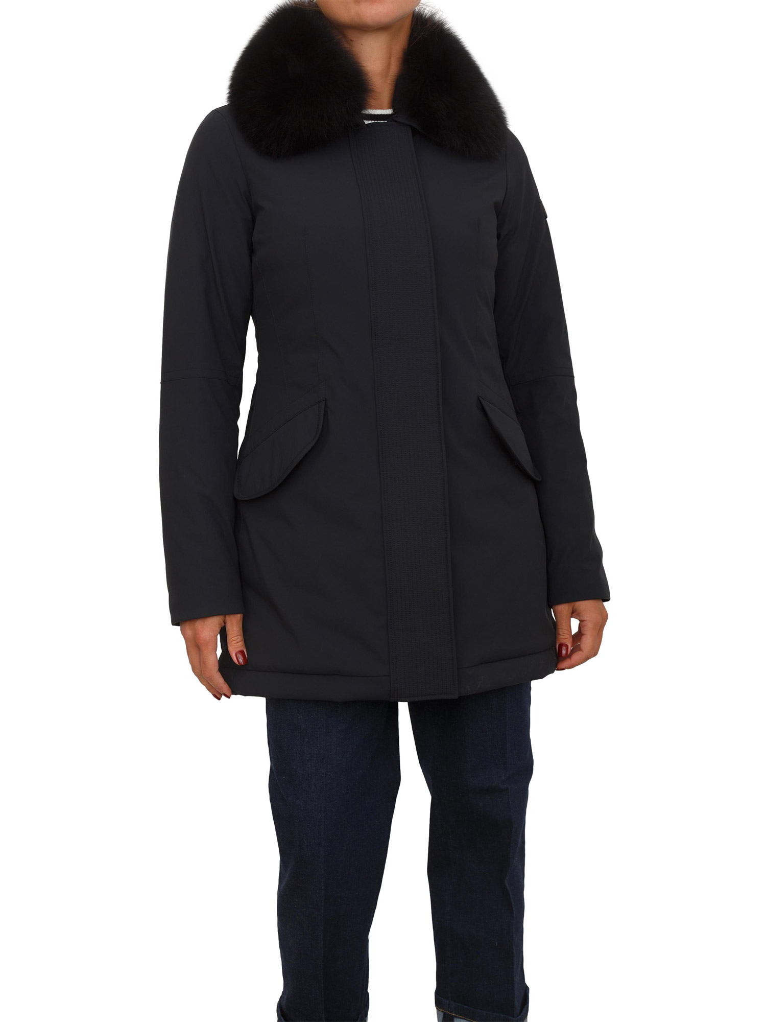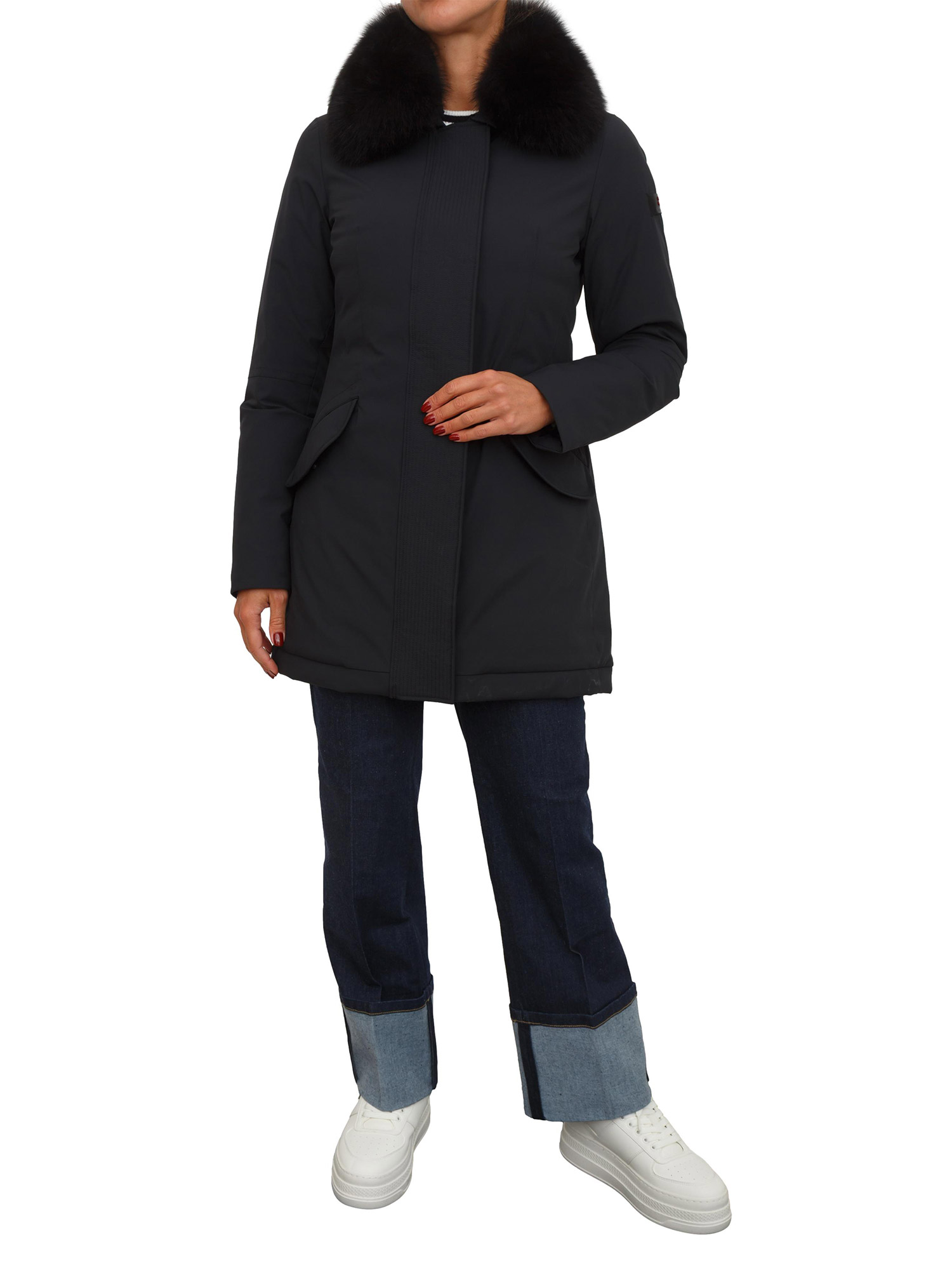 Piumino liscio Peuterey in piuma e tela di nylon stretch performante e resistente a pioggia e vento. Modello impreziosito da ampio collo in pelliccia di volpe staccabile e un impeccabile fit asciutto che valorizza la silhouette femminile. Collo a camicia, chiusura nascosta con zip a doppio cursore e bottoni.La modella è alta 1.72 e indossa la taglia 42.