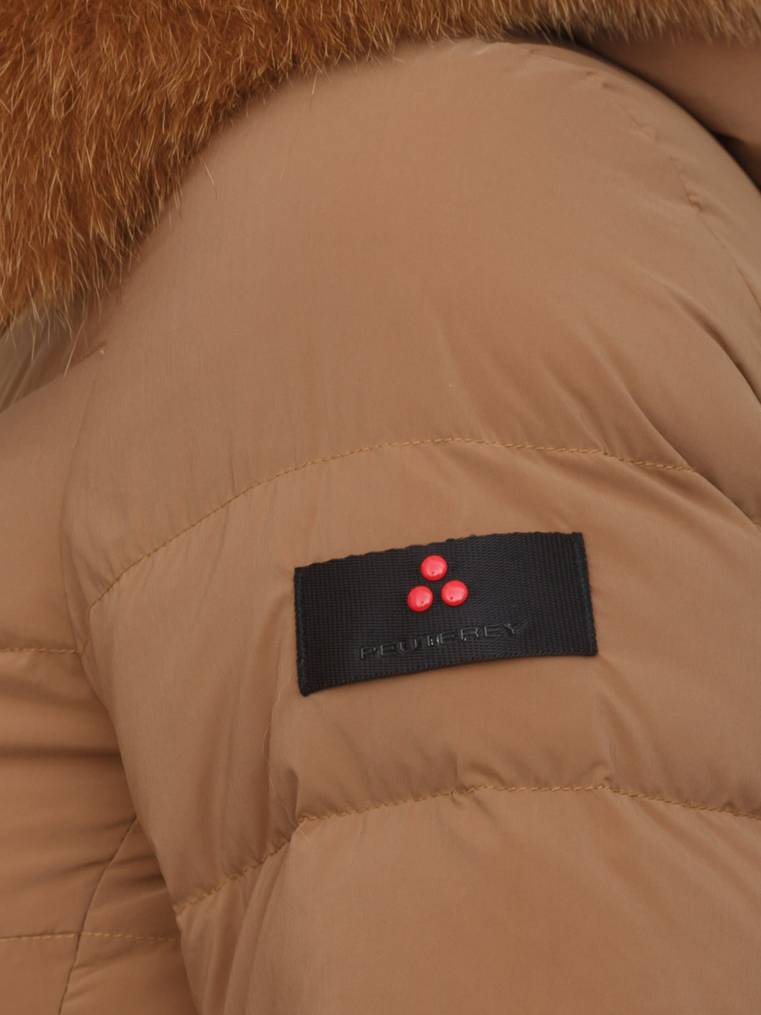 Piumino lungo marrone in piuma naturale Peuterey con collo alto e pelliccia volpe removibile