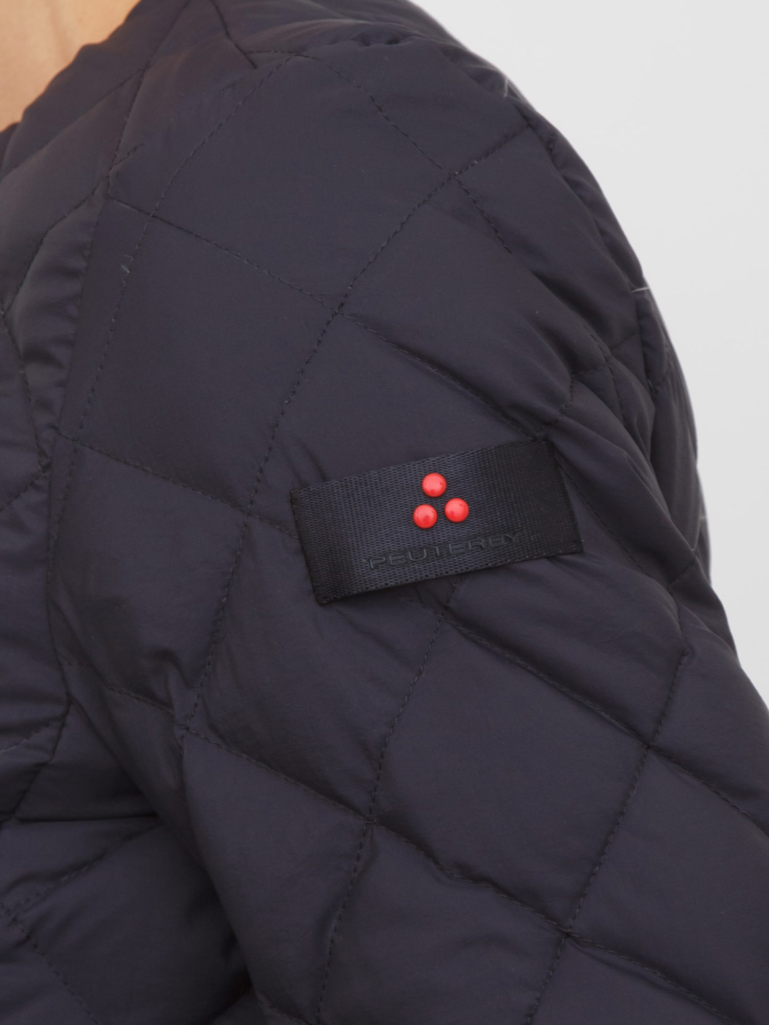 Piumino Peuterey donna modello idrorepellente super leggero in nylon 20 denari, con texture stropicciata ed opaca. Imbottito in piuma naturale certificata, con vestibilità slim che esalta la silhouette. Dotato di chiusura zip, tasche laterali e trapunta a rombi, questo modello unisce leggerezza e praticità.