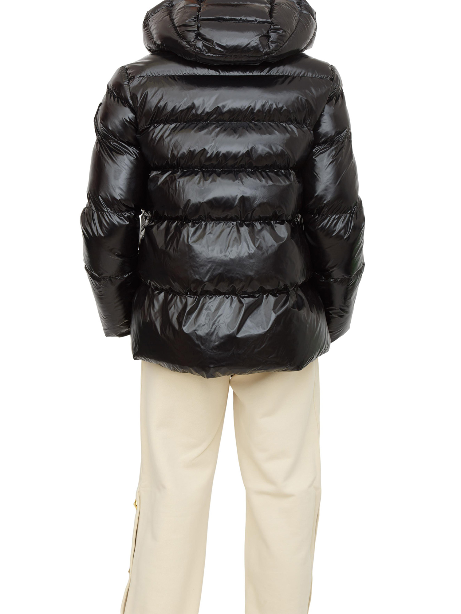 Piumino Pinko in crystal nylon lucido nero con cappuccio