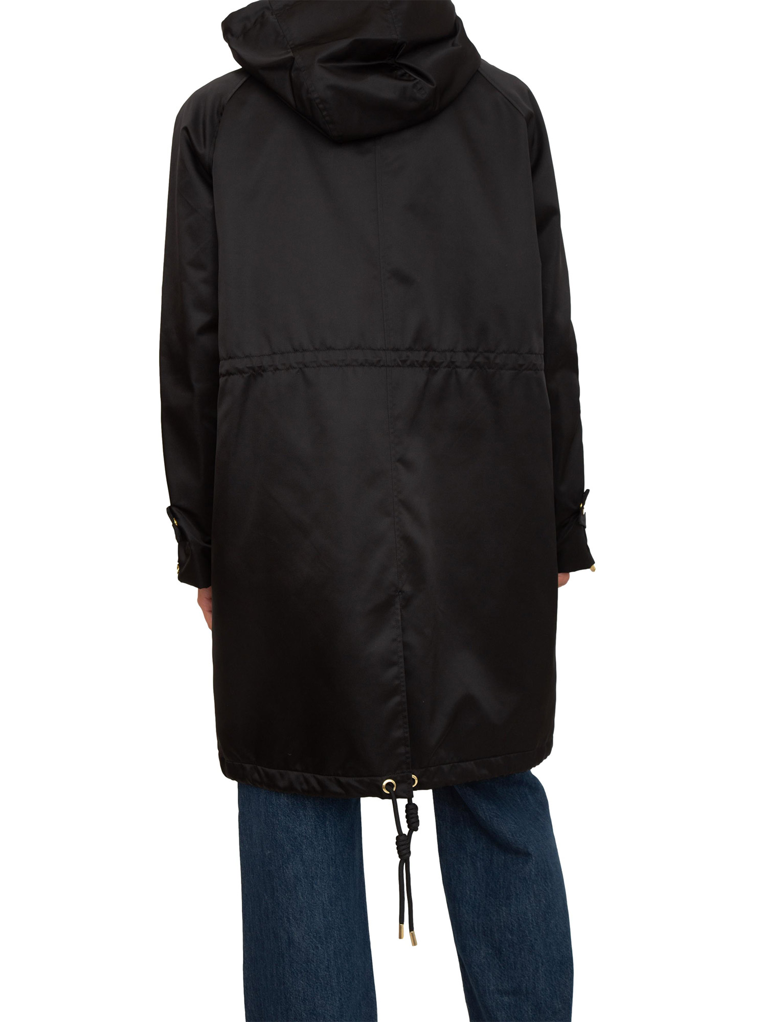 Piumino Pinko in tela lucida con collo alto, cappuccio con coulisse e chiusura zip doppio cursore. Tasche sul petto e coulisse sulla vita e sul fondo per regolare la vestibilità a seconda delle necessità. Dotato di gilet interno leggermente imbottito con tasche e zip. La modella è alta 1.72 e indossa la taglia 38.
