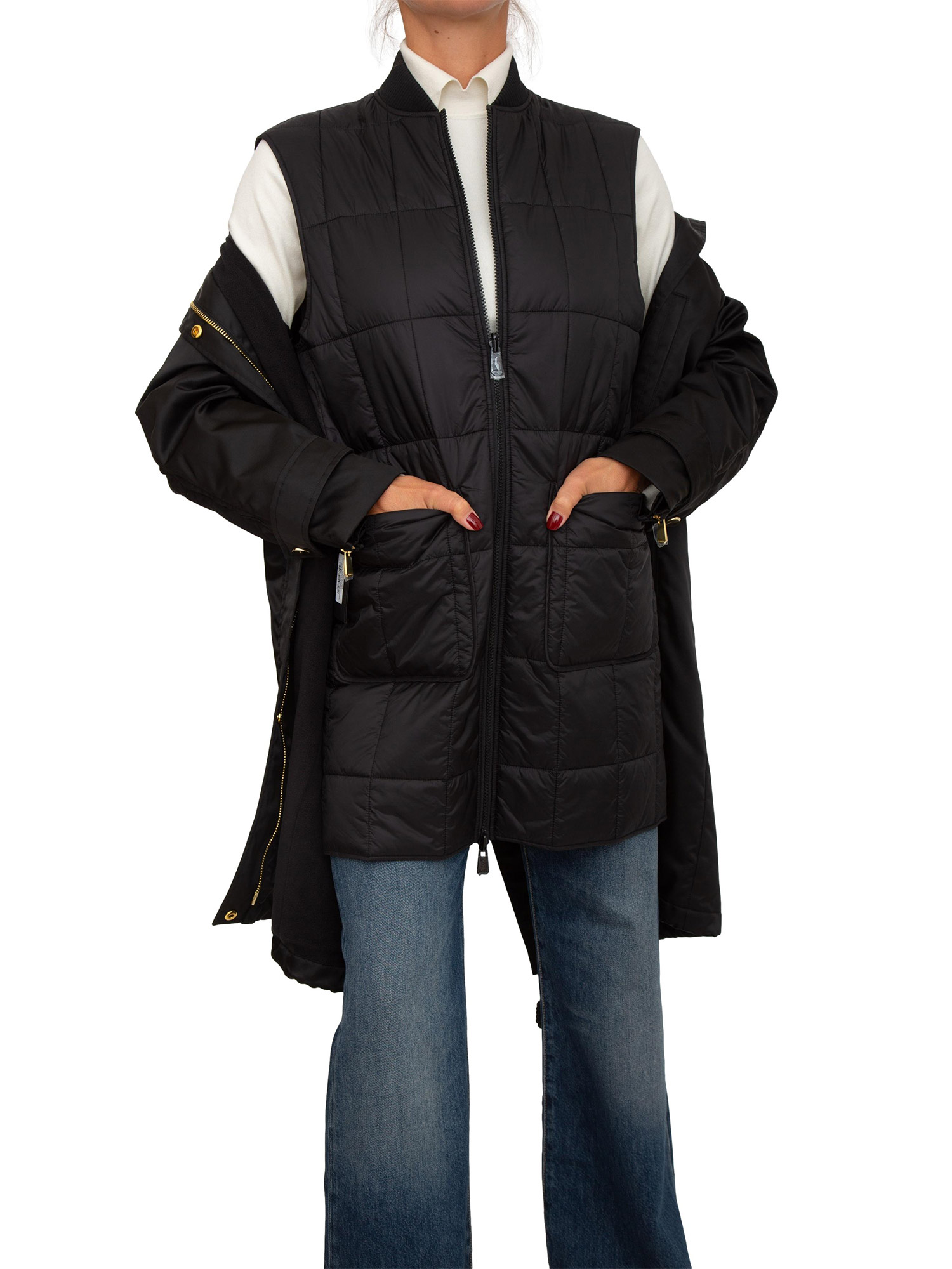 Piumino Pinko in tela lucida con cappuccio e gilet interno