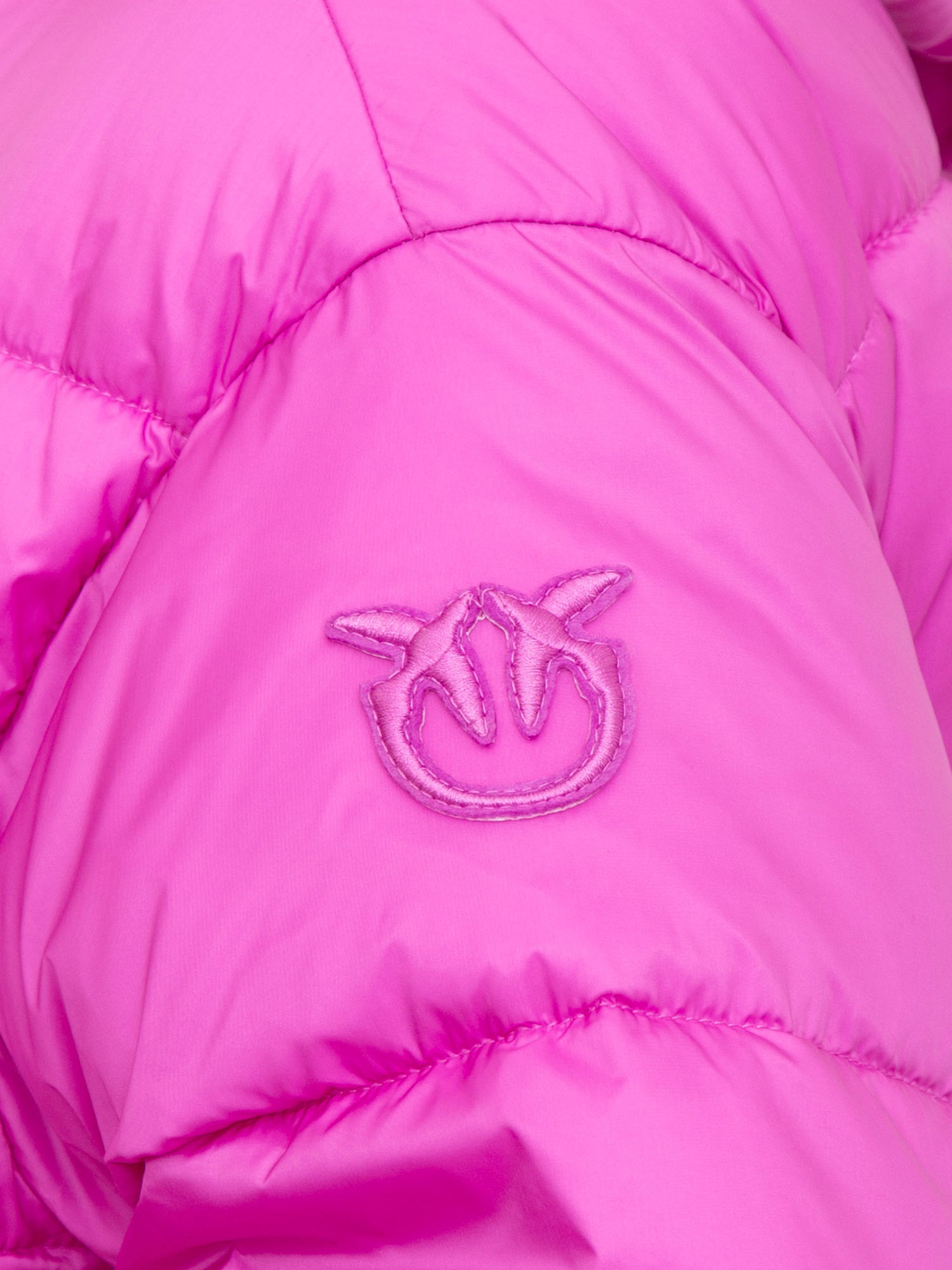 Piumino Pinko in tela tecnica semilucida fuxia con cappuccio