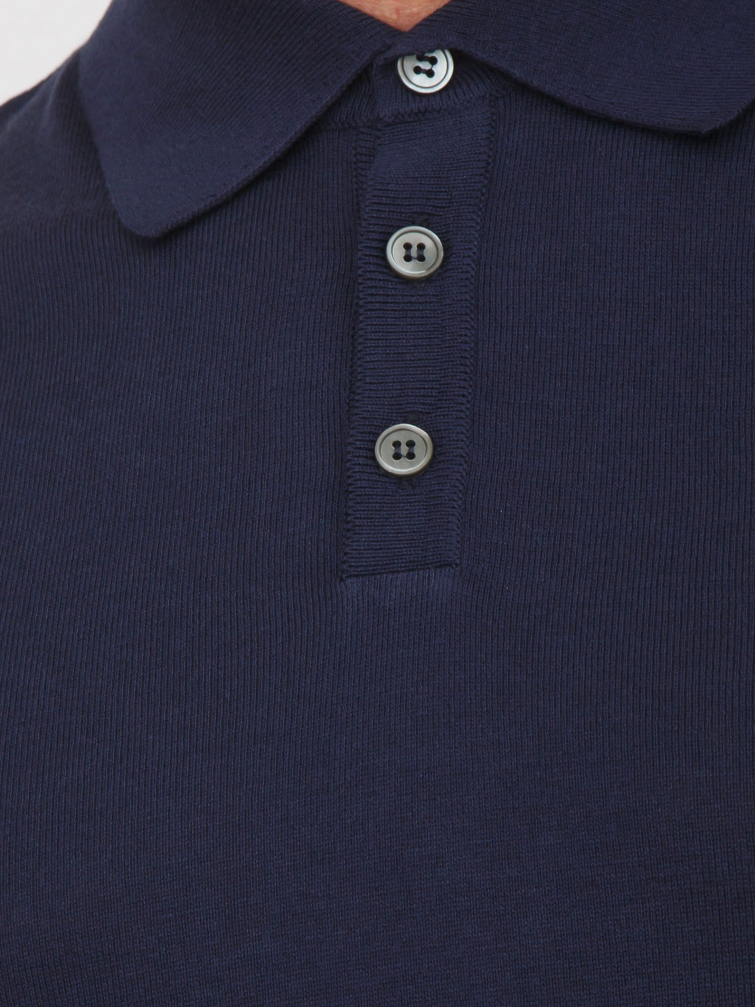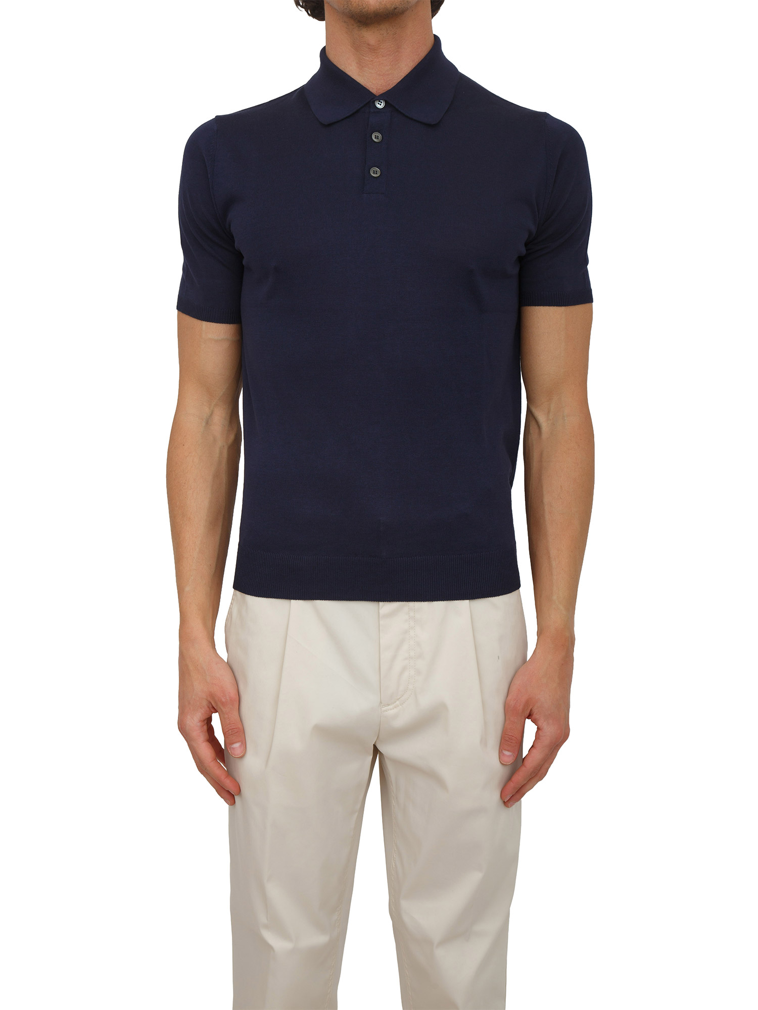 Polo blu Aiace Galassi in maglia di seta e cotone