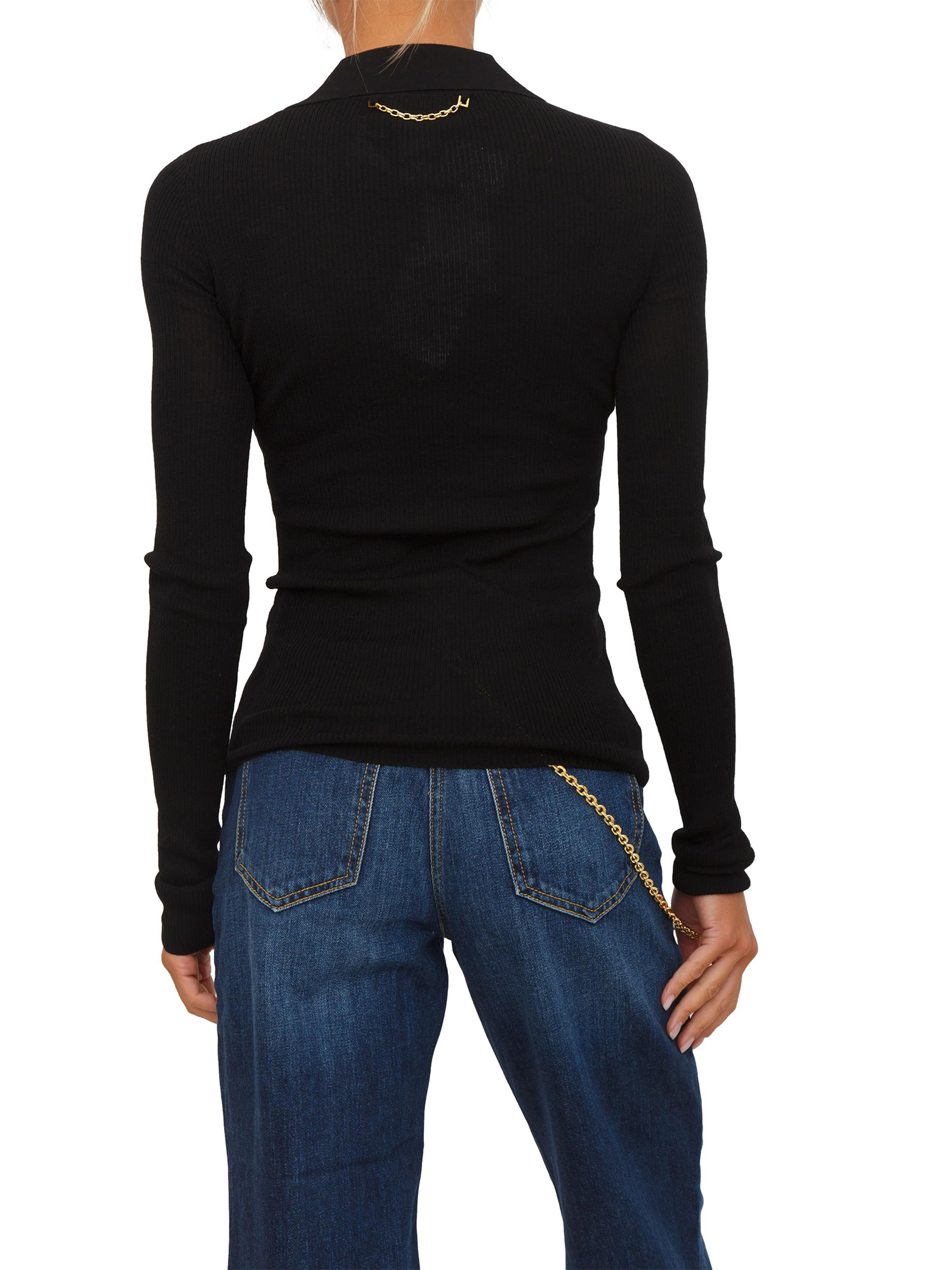 Polo Elisabetta Franchi in maglia nera con stampa lettering