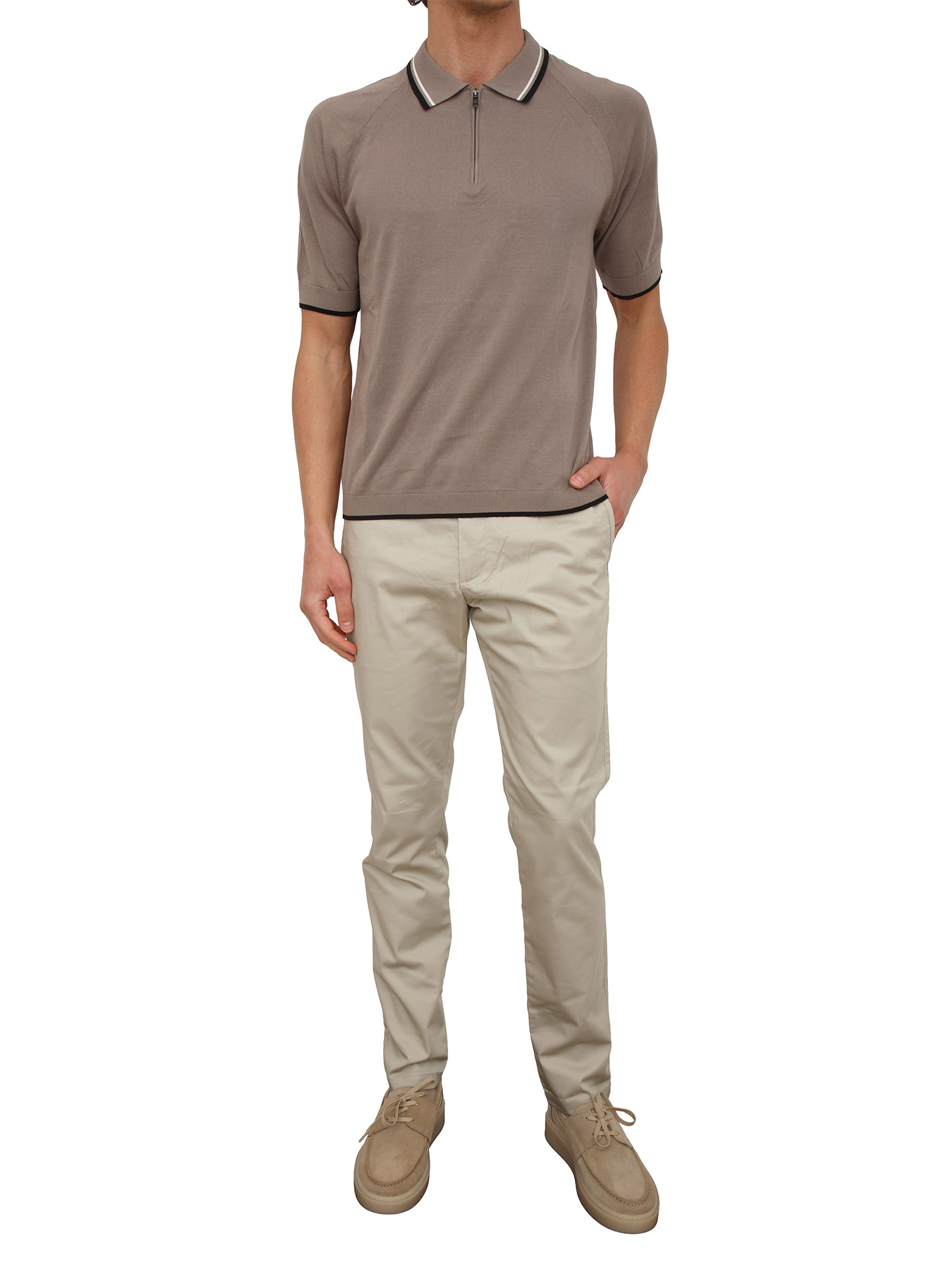 Polo in maglia Armani Exchange taupe profili a contrasto
