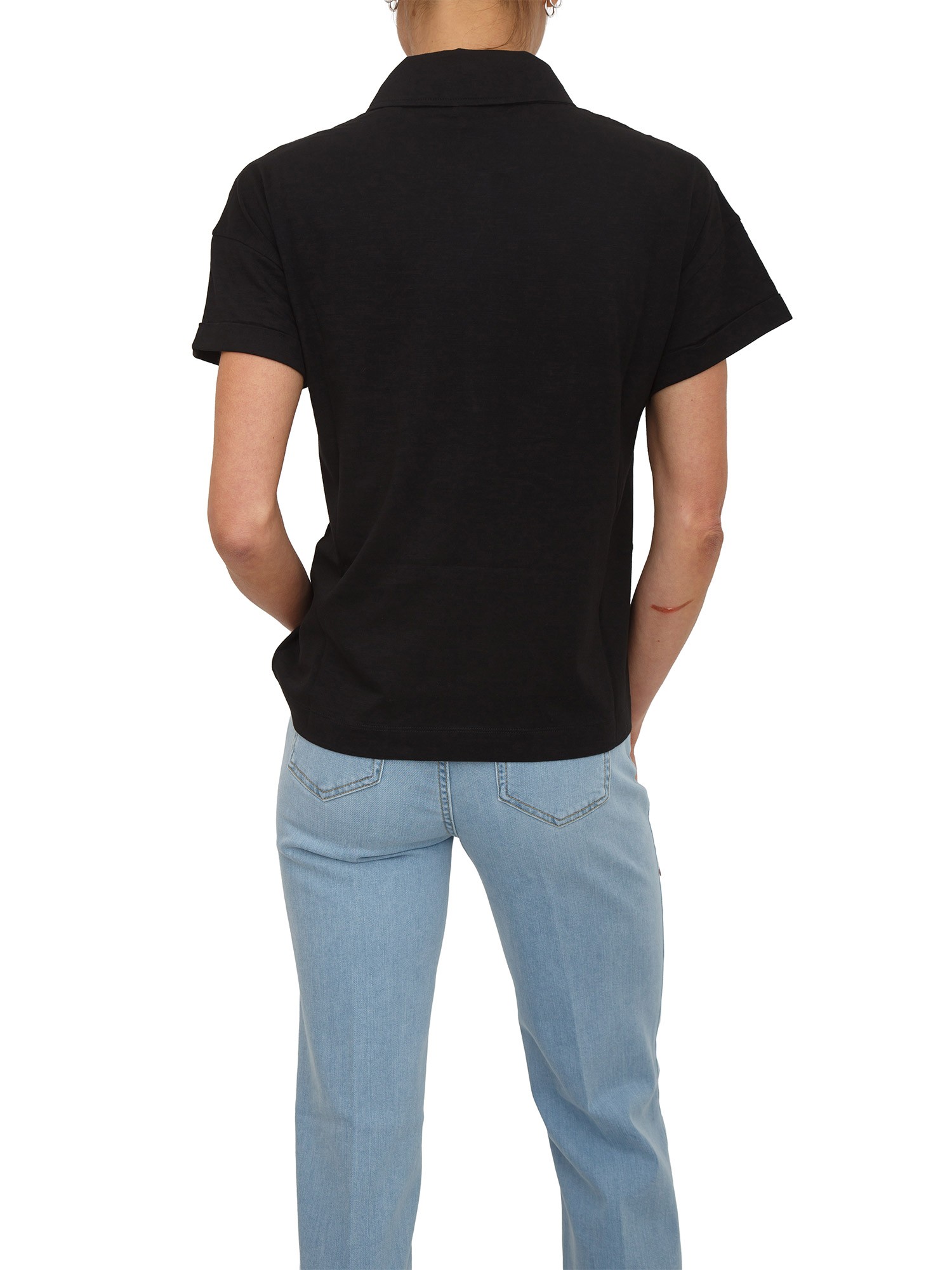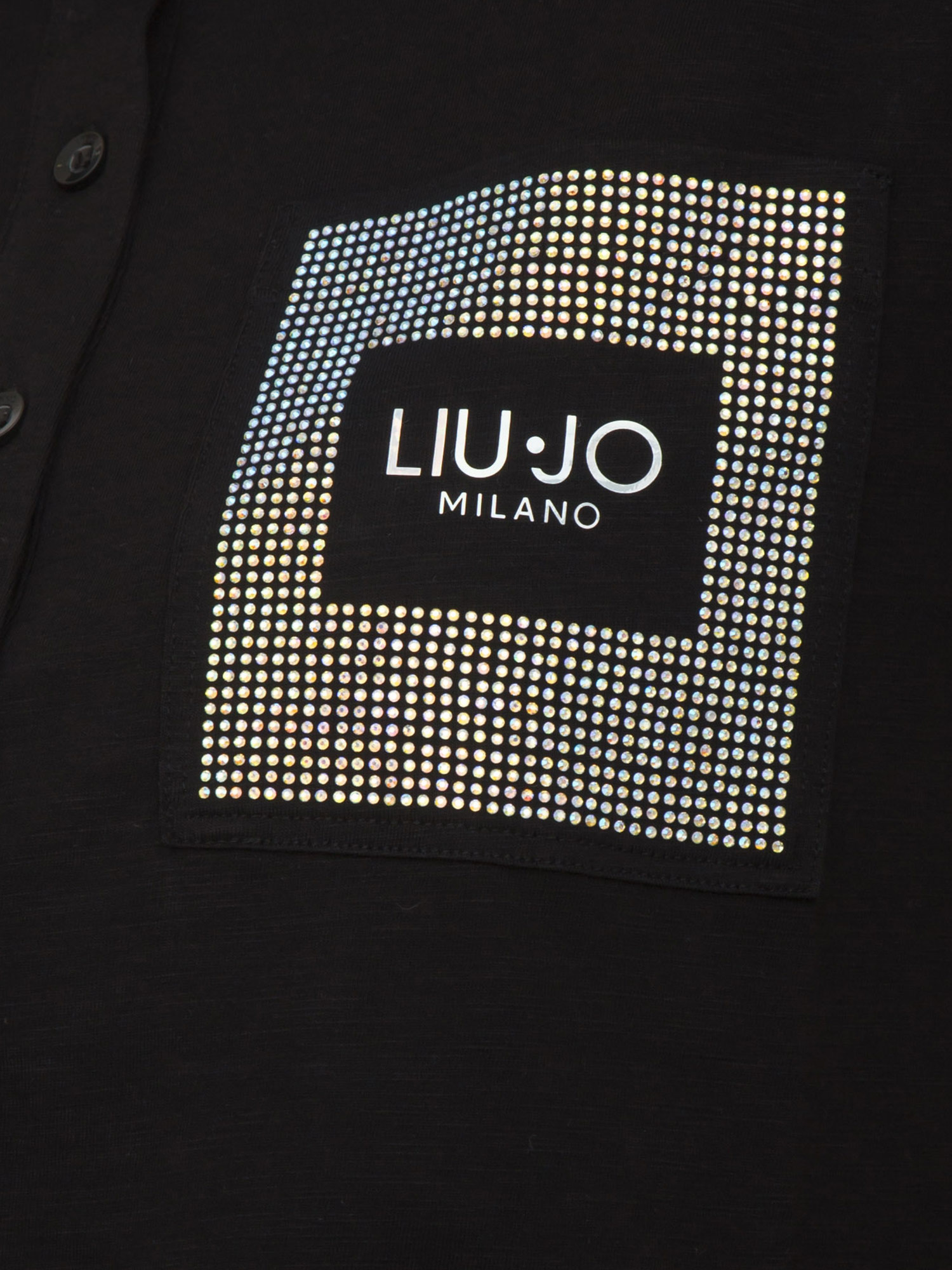 Polo Liu Jo donna in cotone nero con tasca strass