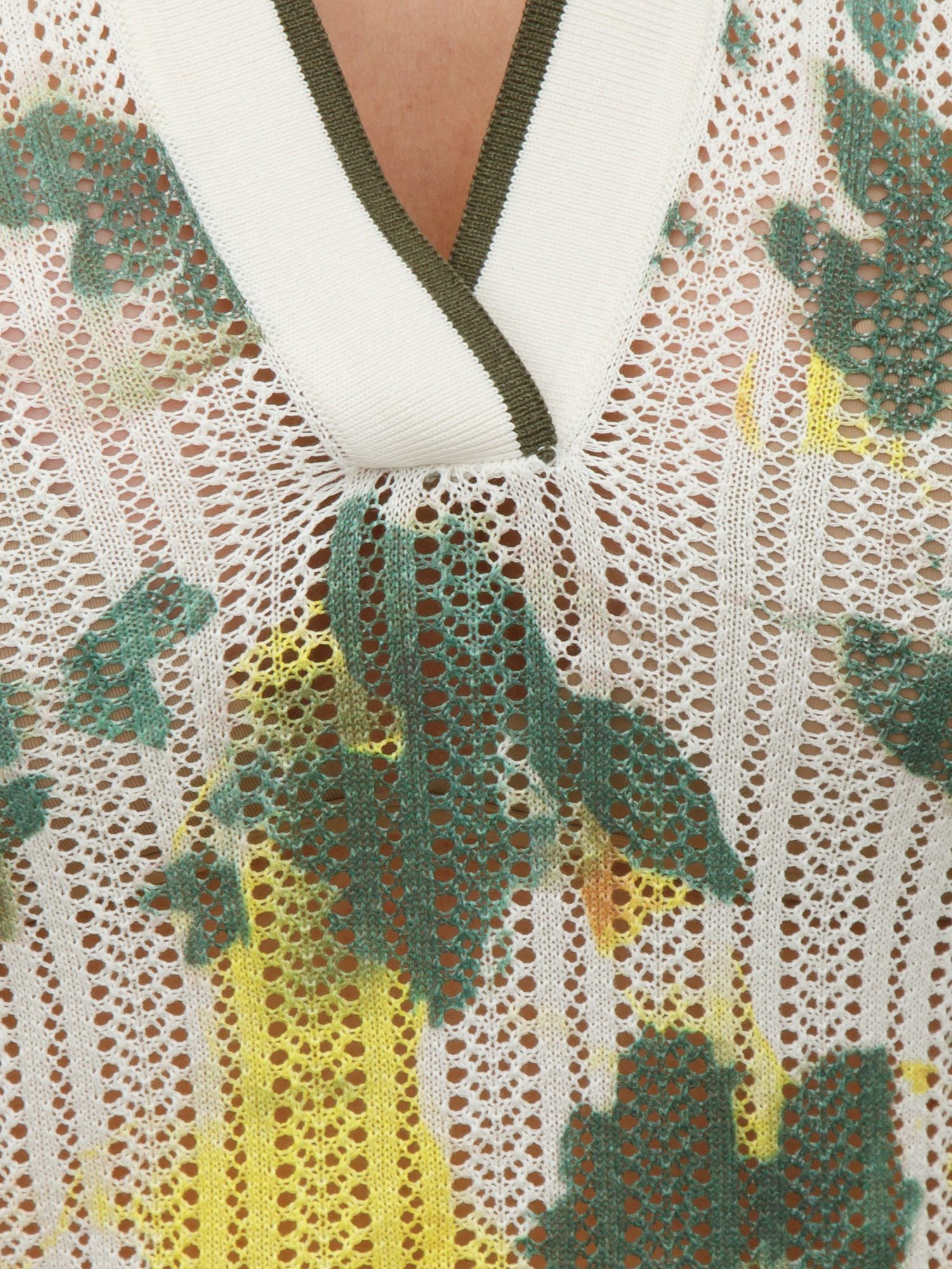 Polo Liu Jo donna in maglia punzonata verde stampa fiori