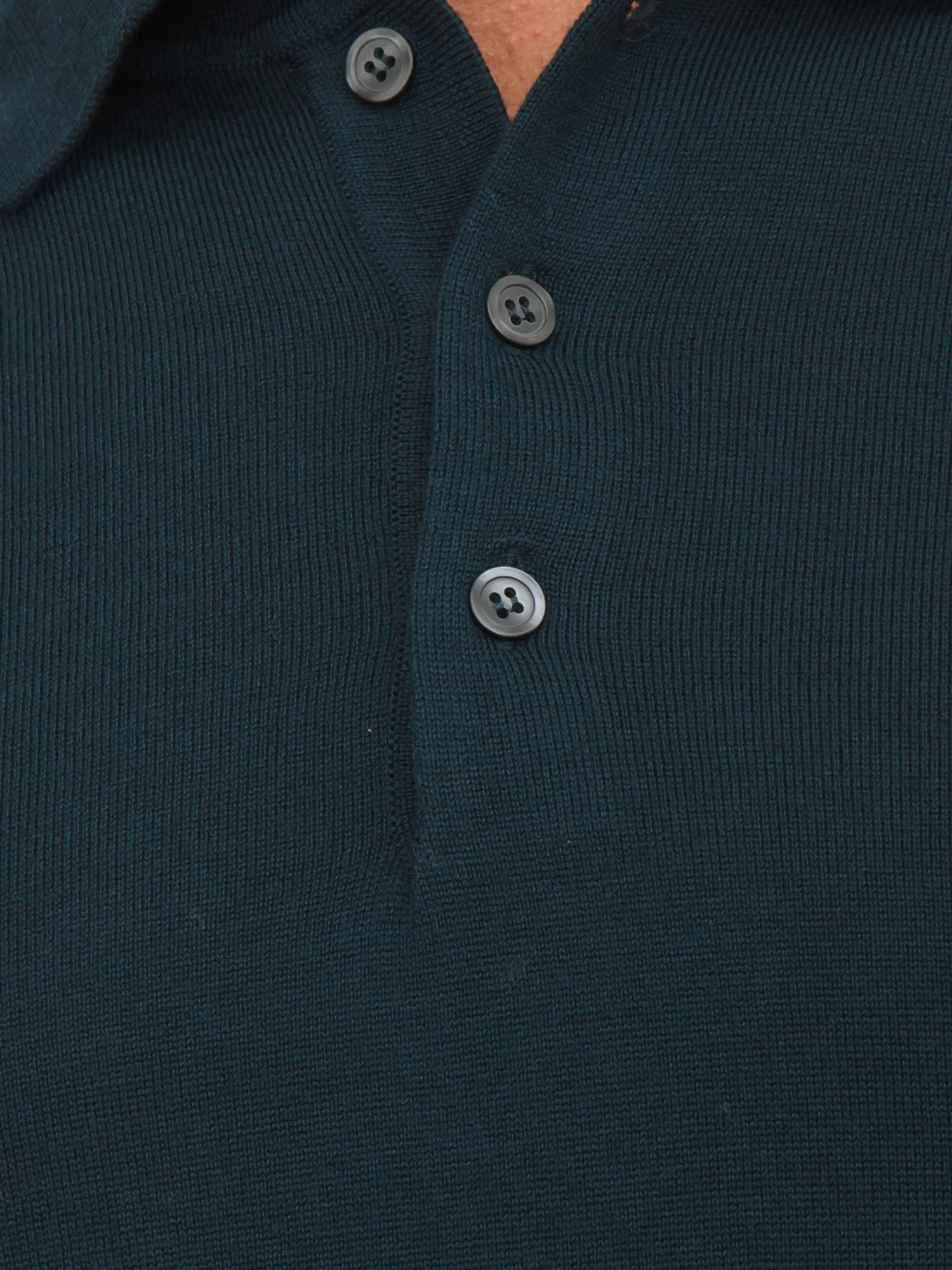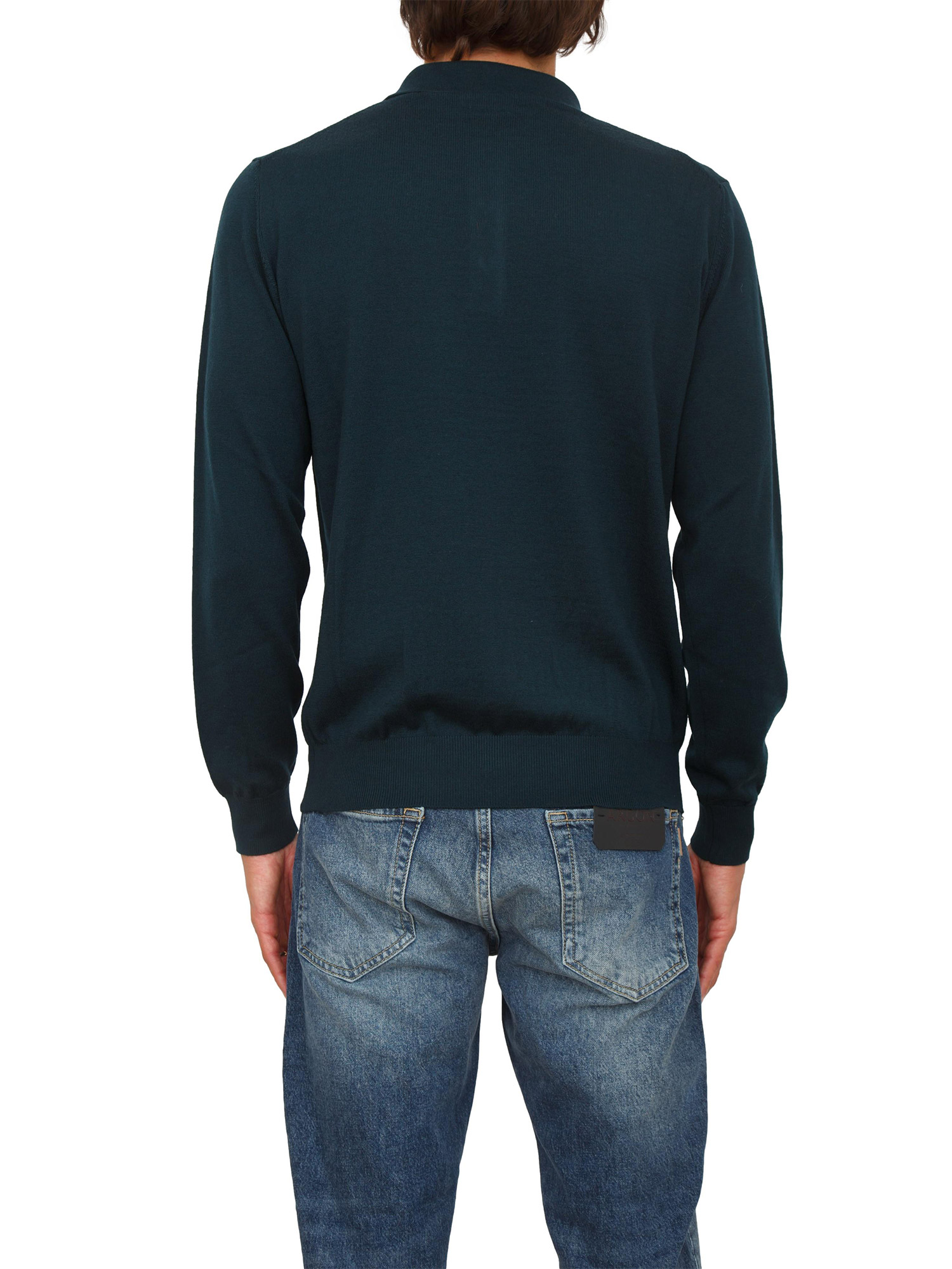 Polo maglia Aiace Galassi in lana fine verde con chiusura tre bottoni