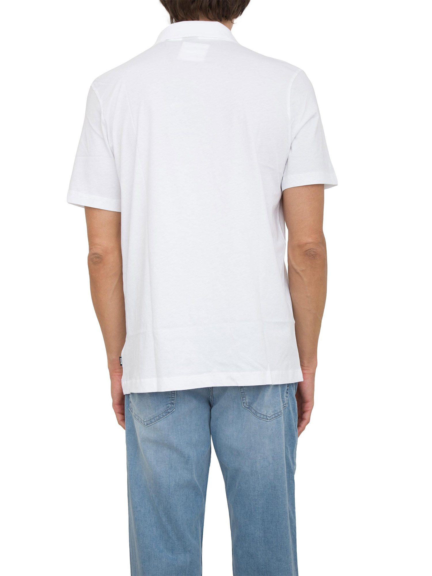 Polo Boss in cotone bianco con stampa logo a rilievo