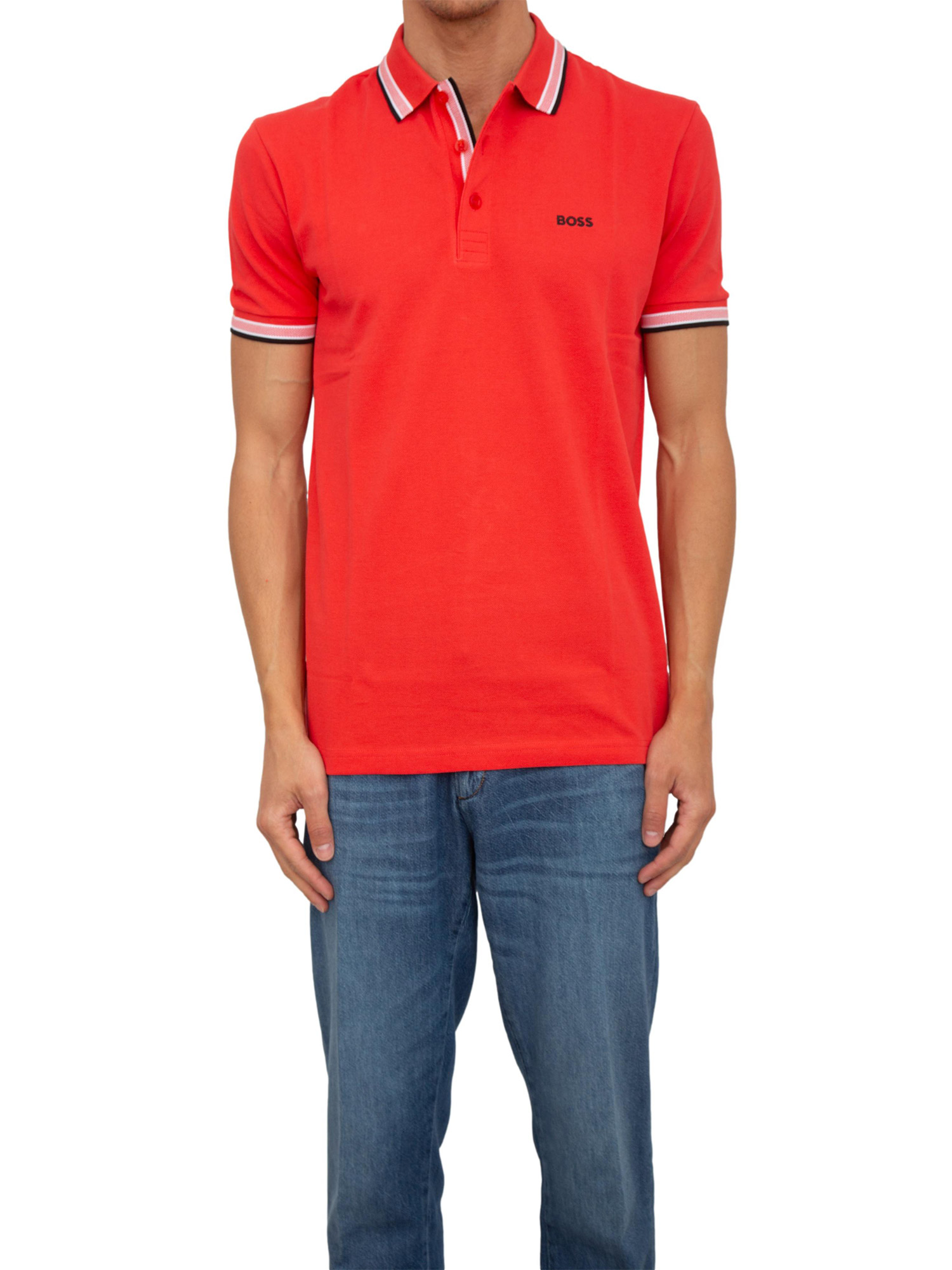 • Polo rossa Boss uomo in piqué di cotone con logo in UOMO