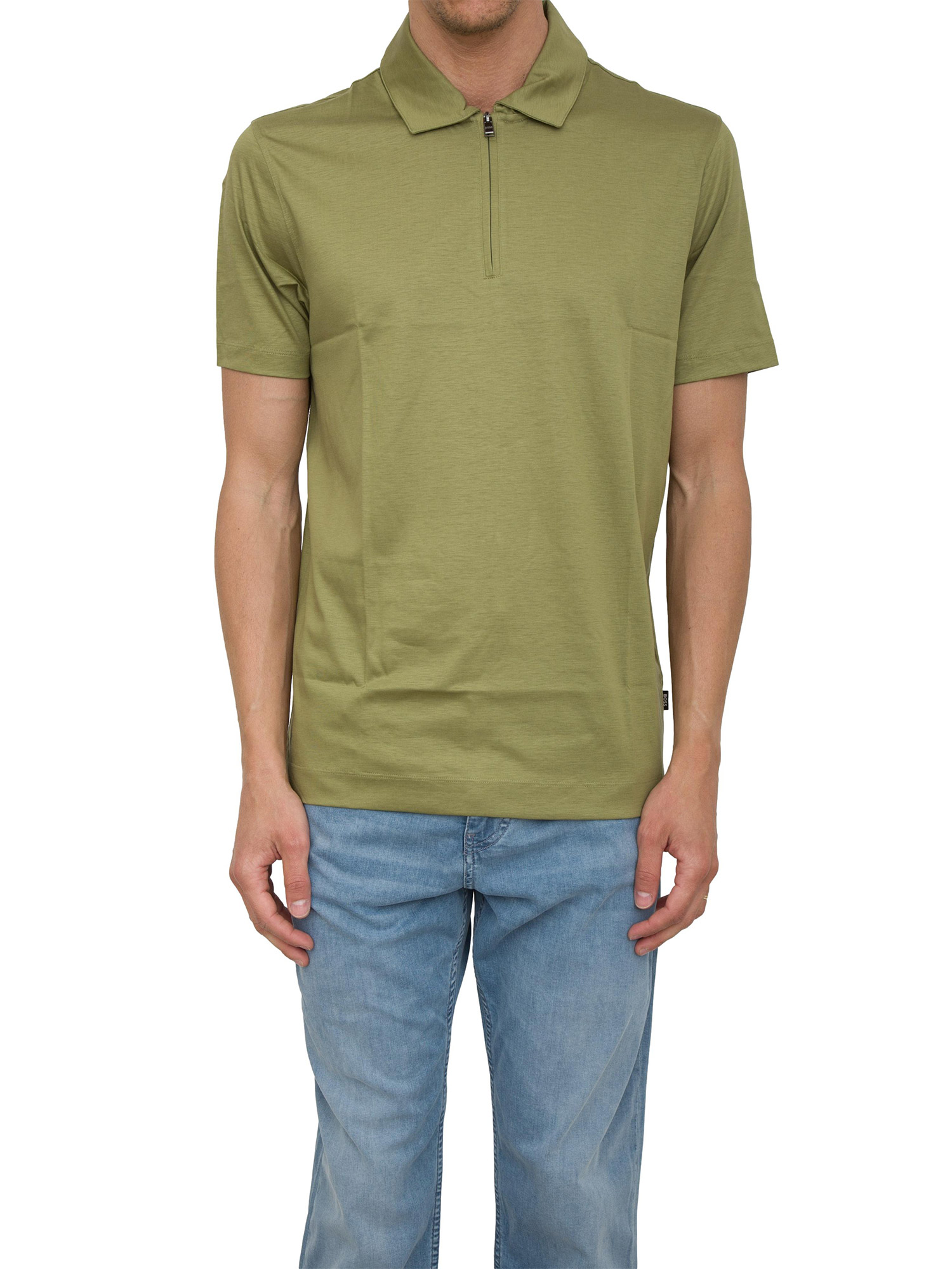 Polo Boss verde relaxed fit con zip