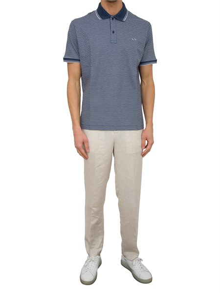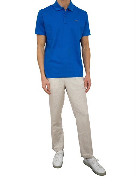 Polo a maniche corte con colletto classico e abbottonatura a due bottoni, con logo stampato sul petto e dettaglio cuciture a contrasto. Realizzata in jersey di cotone indaco. Fit regolare.Il modello è alto 1.90m e indossa la taglia L.