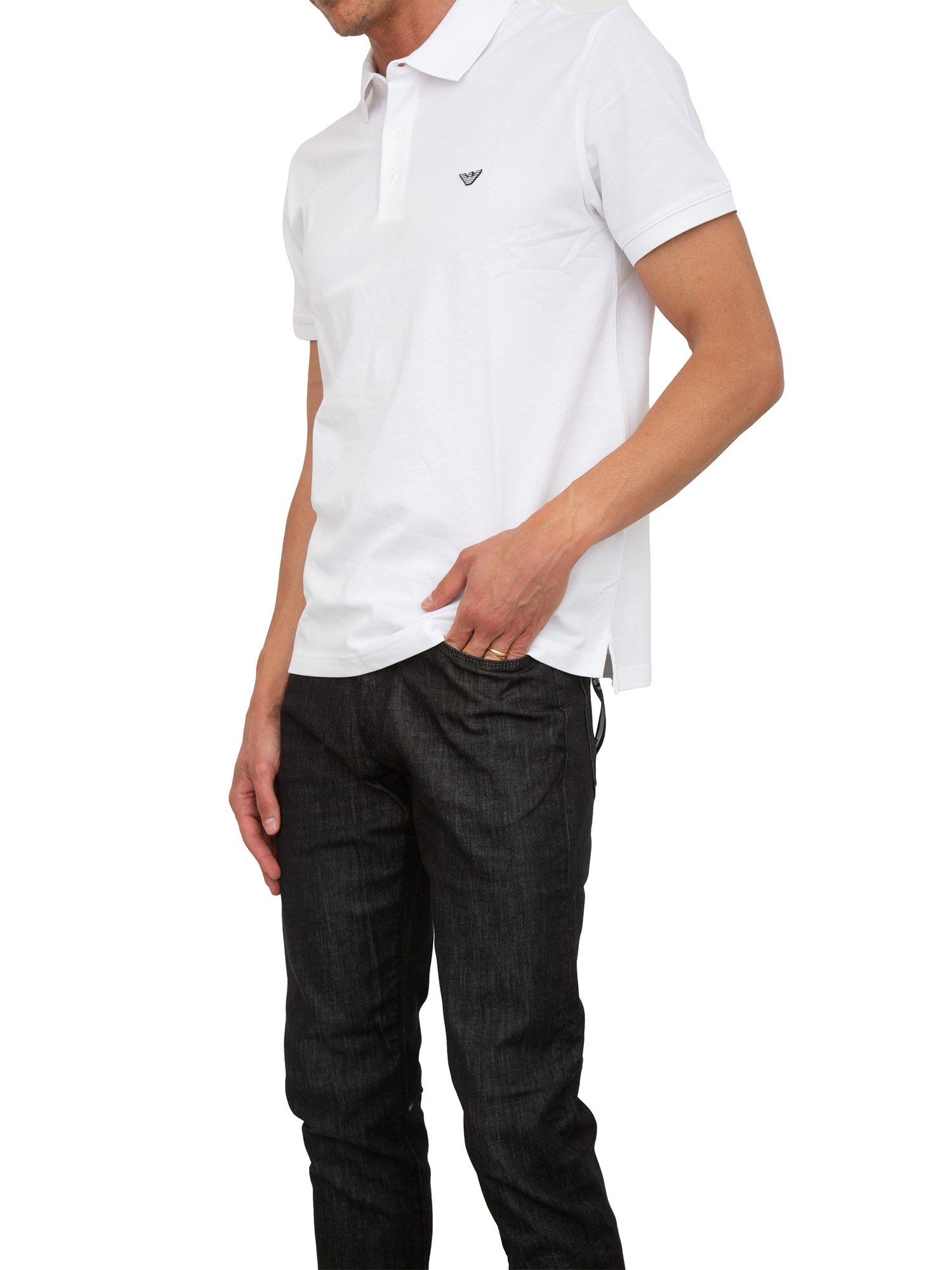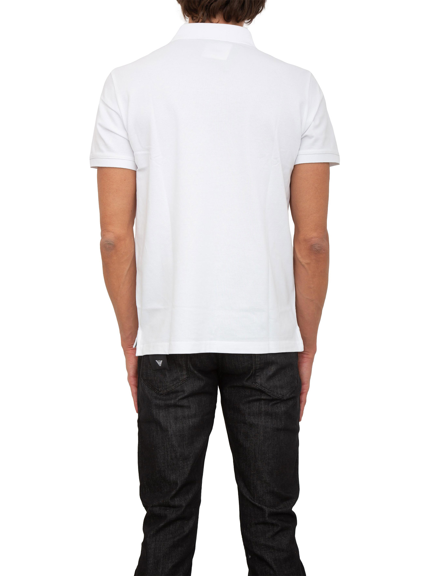 Polo bianca Emporio Armani uomo con patch micro logo Aquila a contrasto