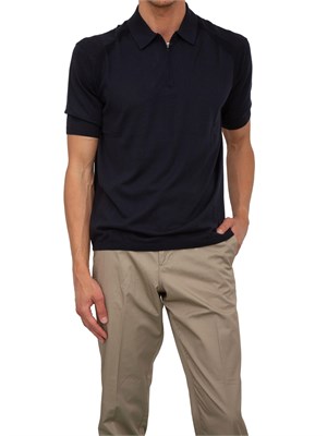 Maglia uomo maniche corte Emporio Armani con collo polo e zip parziale, realizzata con fitte costine a lavorazione rasata. Modello dal taglio regular arricchito da applicazione micro logo Aquila tono su tono sul fondo a sinistra. Ideale per tutti i tuoi outfit casual e ricercati. Il modello è alto 1.90m e indossa la taglia L.