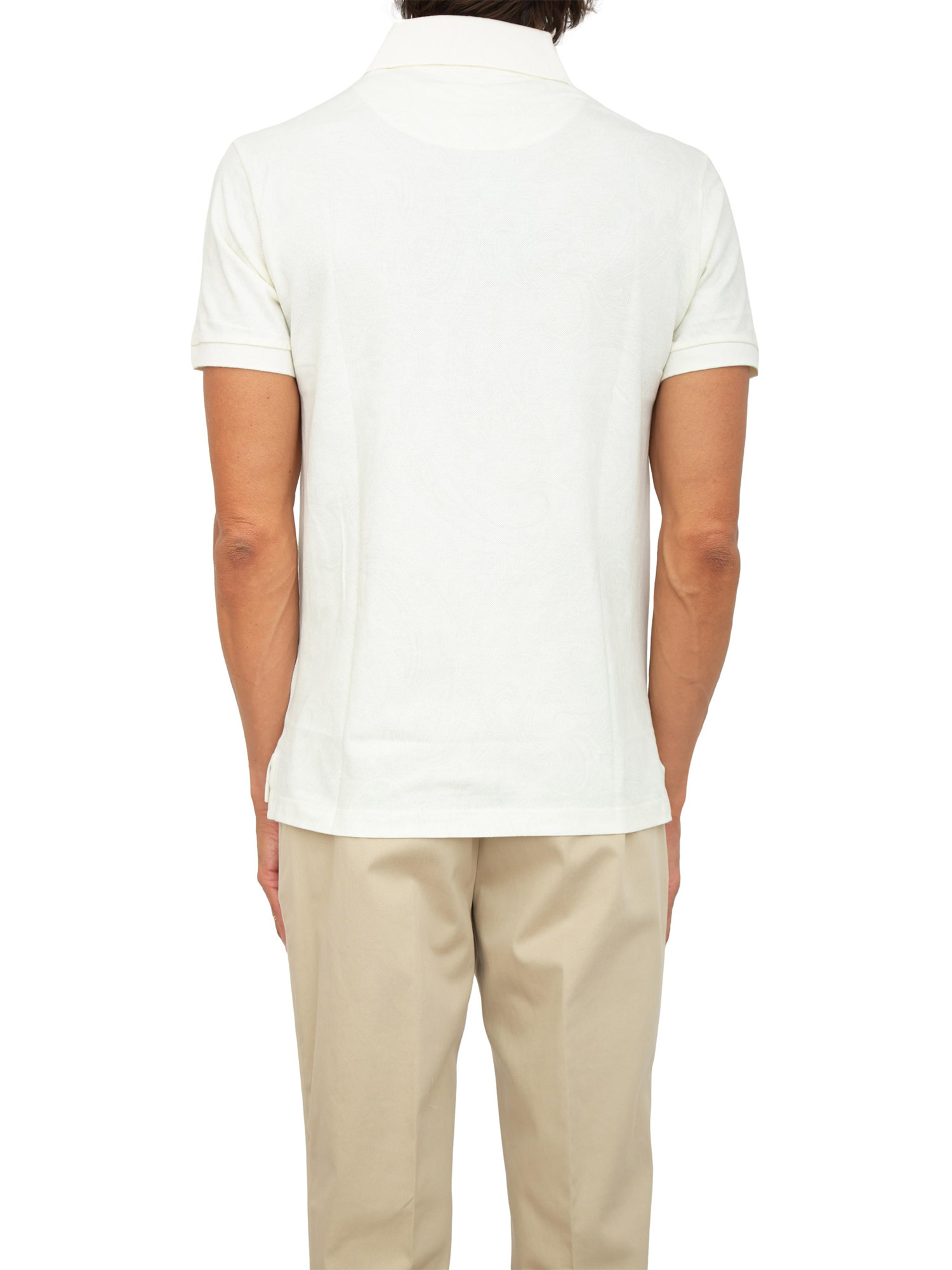 Polo bianco panna Etro in cotone con ricamo Pegaso tono su tono