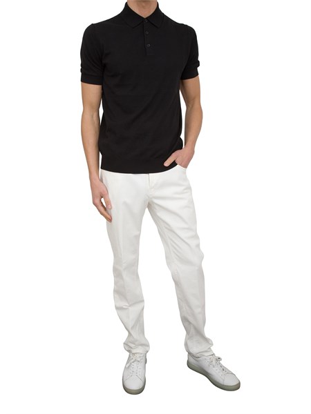 Poloa righe breton con il colletto tinta unita e gli spacchetti sui lati per la massima libertà di movimento. Realizzata in jersey di cotone double mercerised, risulta naturalmente traspirante e leggera a contatto con la pelle.