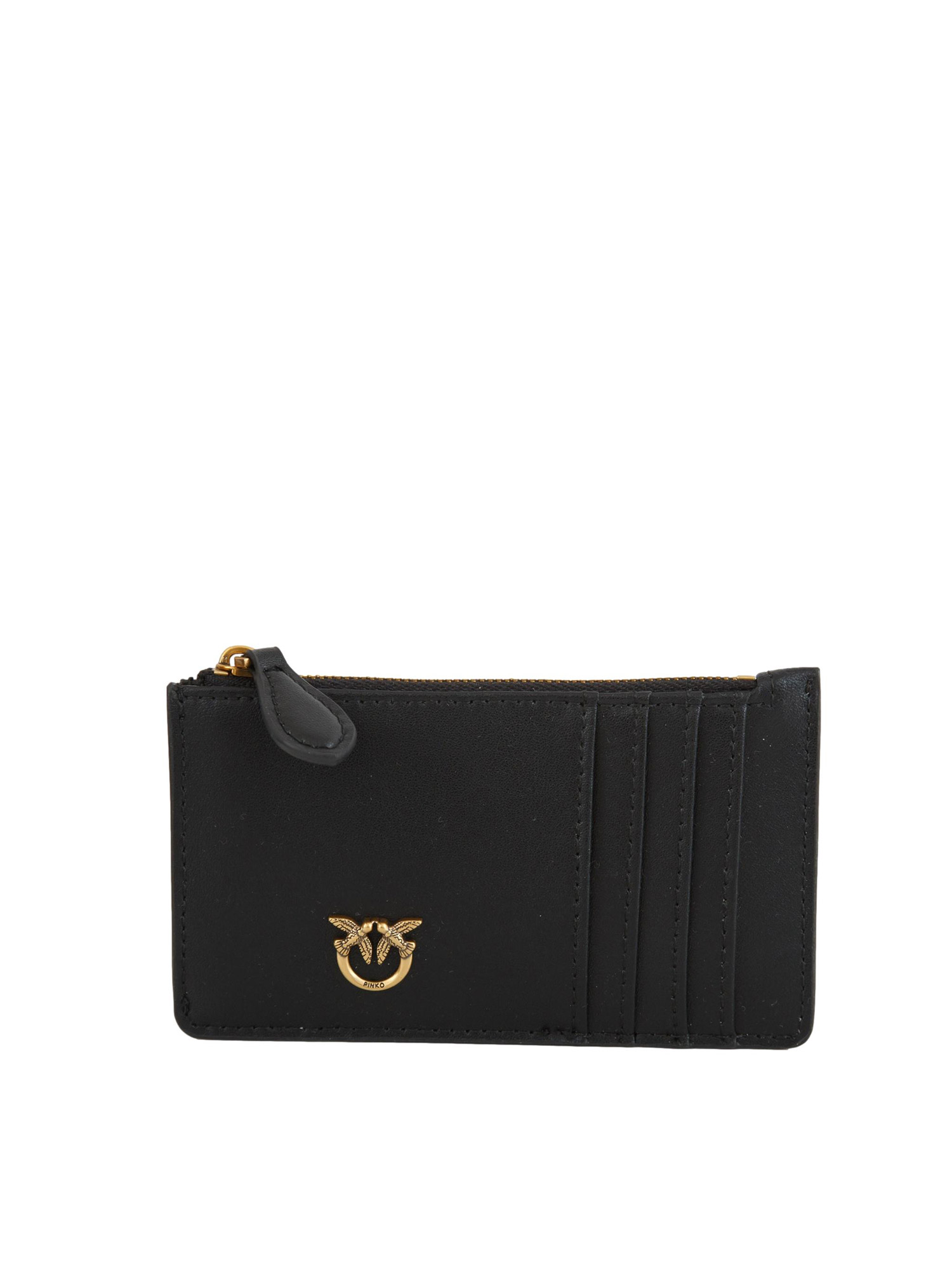 Porta carte di credito Pinko realizzata in morbida pelle mano seta. Personalizzato con placchetta in metallo logo Love Birds Diamond Cut. L'interno è foderato in polycotton. Chiusura con zip. Dimensioni: 14x8x1 cm.