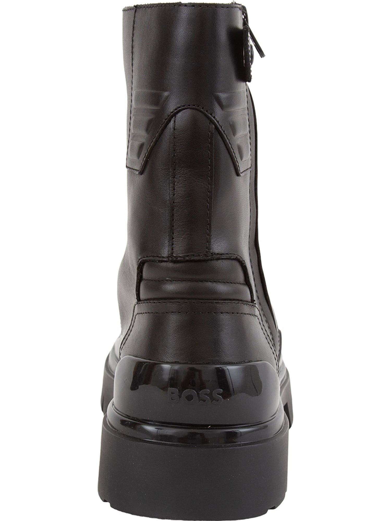 Stivaletti stringati BOSS in pelle liscia con suola spessa, cinturino brandizzato e rifinitura in gomma.