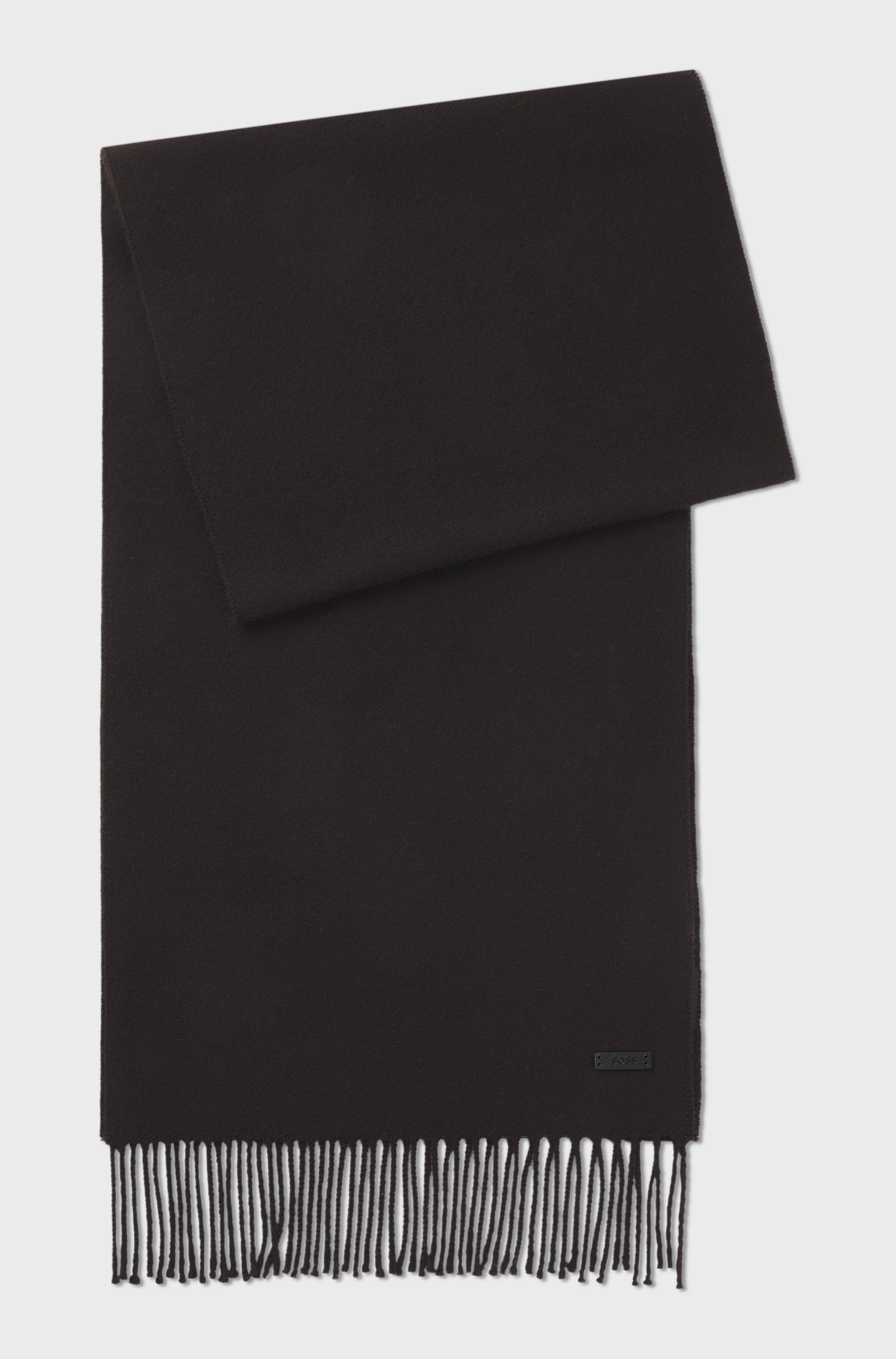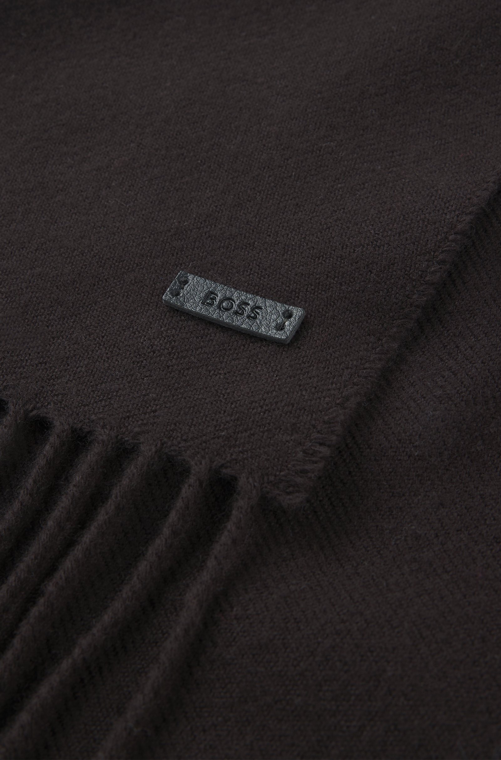 Realizzata in morbido twill di lana con estremità sfrangiate, questa calda sciarpa BOSS Uomo è un vero e proprio classico per l’inverno. Toppa con logo in tessuto sintetico rivestito. Dimensioni: 164 x 32 cm