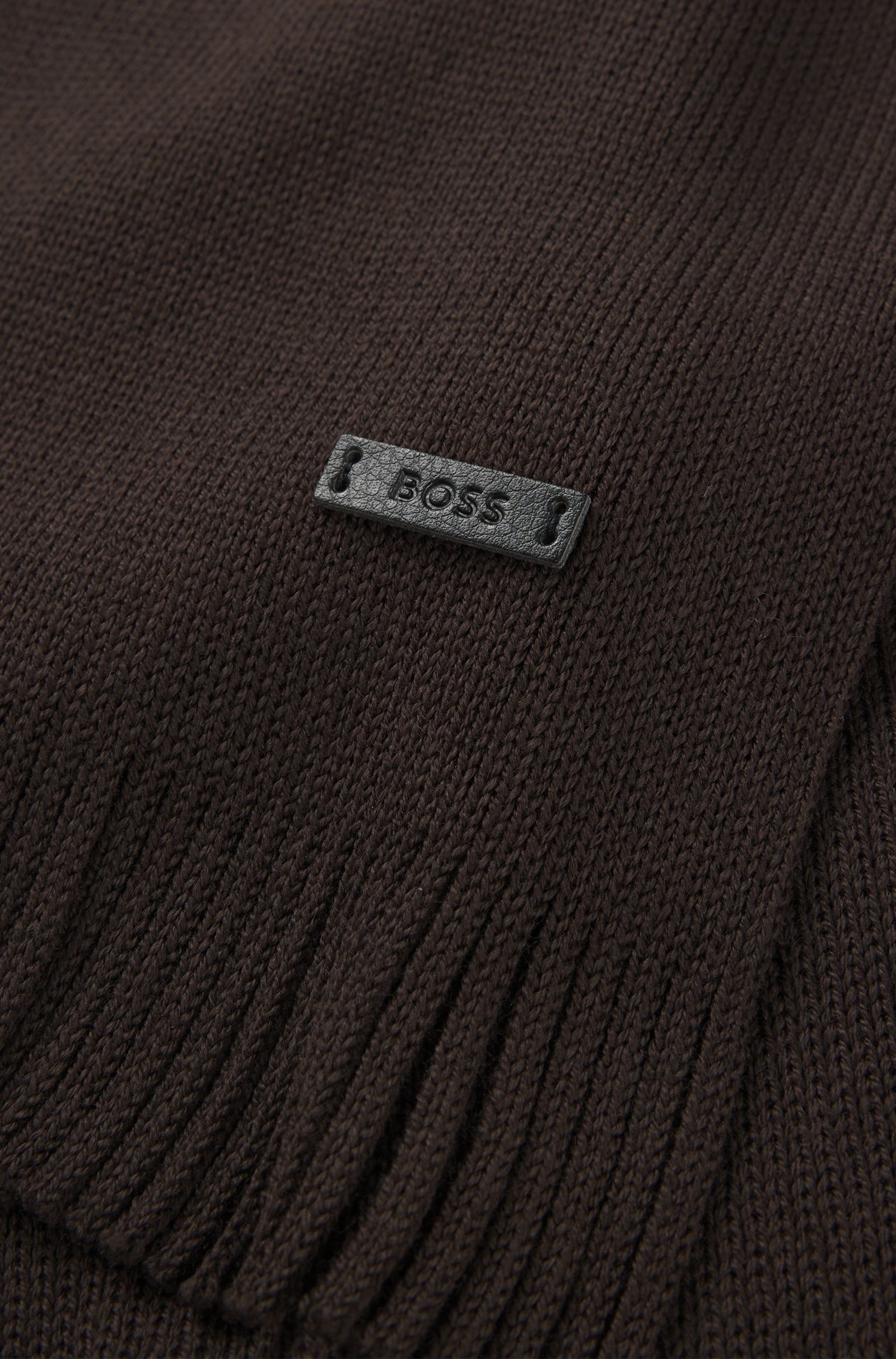 Una sciarpa versatile BOSS uomo con lavorazione Raschel, frange e placca in similpelle brandizzata. Questo prodotto è realizzato con calda lana proveniente da allevamenti responsabili. Dimensioni: 25 x 170 cm