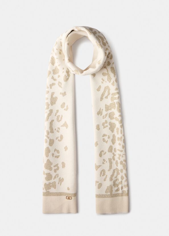 Sciarpa Liu Jo in viscosa e lurex avorio motivo animalier