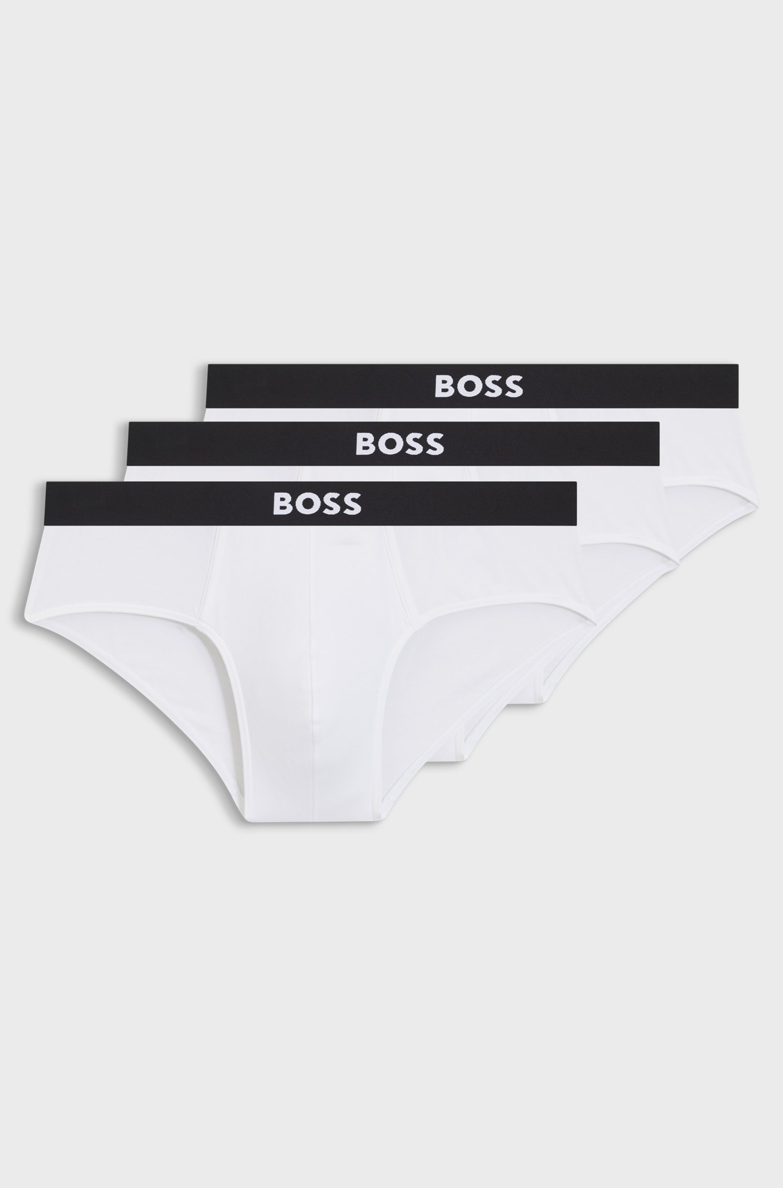 Set 3 slip Boss uomo. Caratterizzati da logo al centro dell'elastico in vita, questi tre slip BOSS Uomo sono realizzati in jersey di cotone elasticizzato per il massimo comfort. Design a vita bassa.