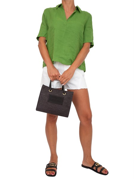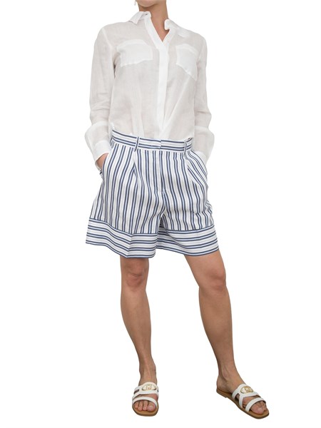 Shorts con vita alta in cr[and]ecirc;pe leggero stretch con nervature. Il punto vita è enfatizzato da una cintura in materiale sintetico effetto pelle con fibbia in metallo dorato.