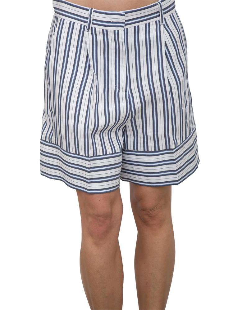 Le righe a bandoliera sono la stampa ideale per questi shorts donna Marella realizzati in lino e cotone. Tessuto in tela diagonale di viscosa, lino e cotone con fit dritto e chiusura con bottone e zip nascosti. Le tasche laterali li rendono ideali per la bella stagione, leggeri e colorati per affrontare con stile la città o i momenti di relax. La modella è alta 1.72 e indossa la taglia 40.