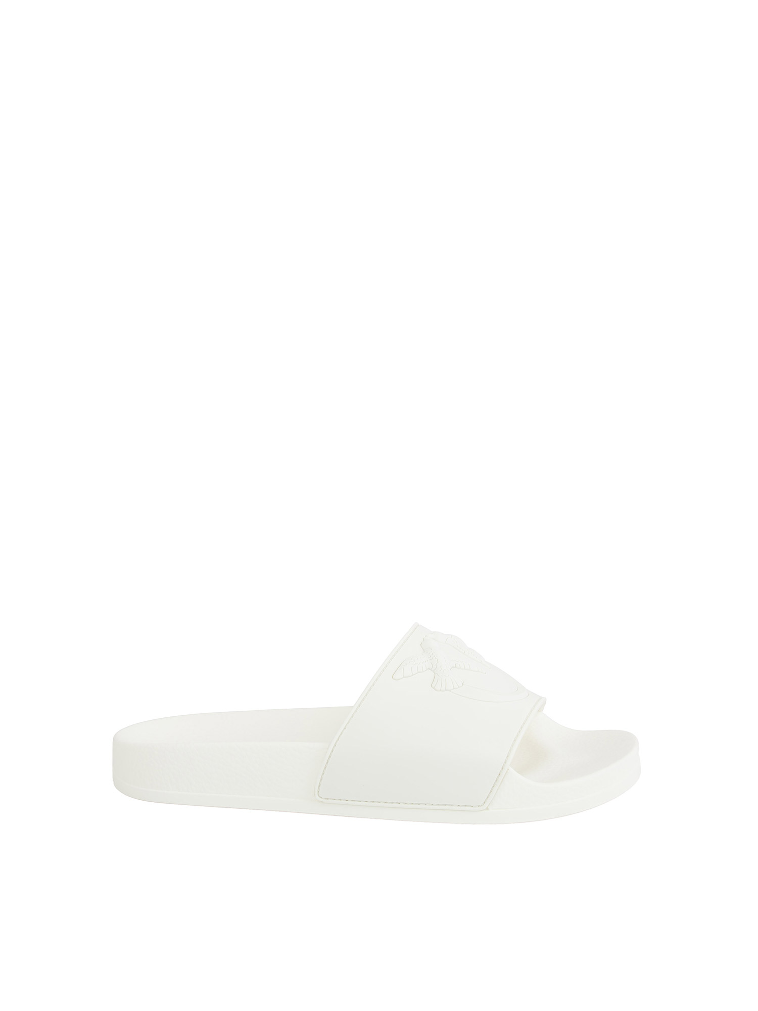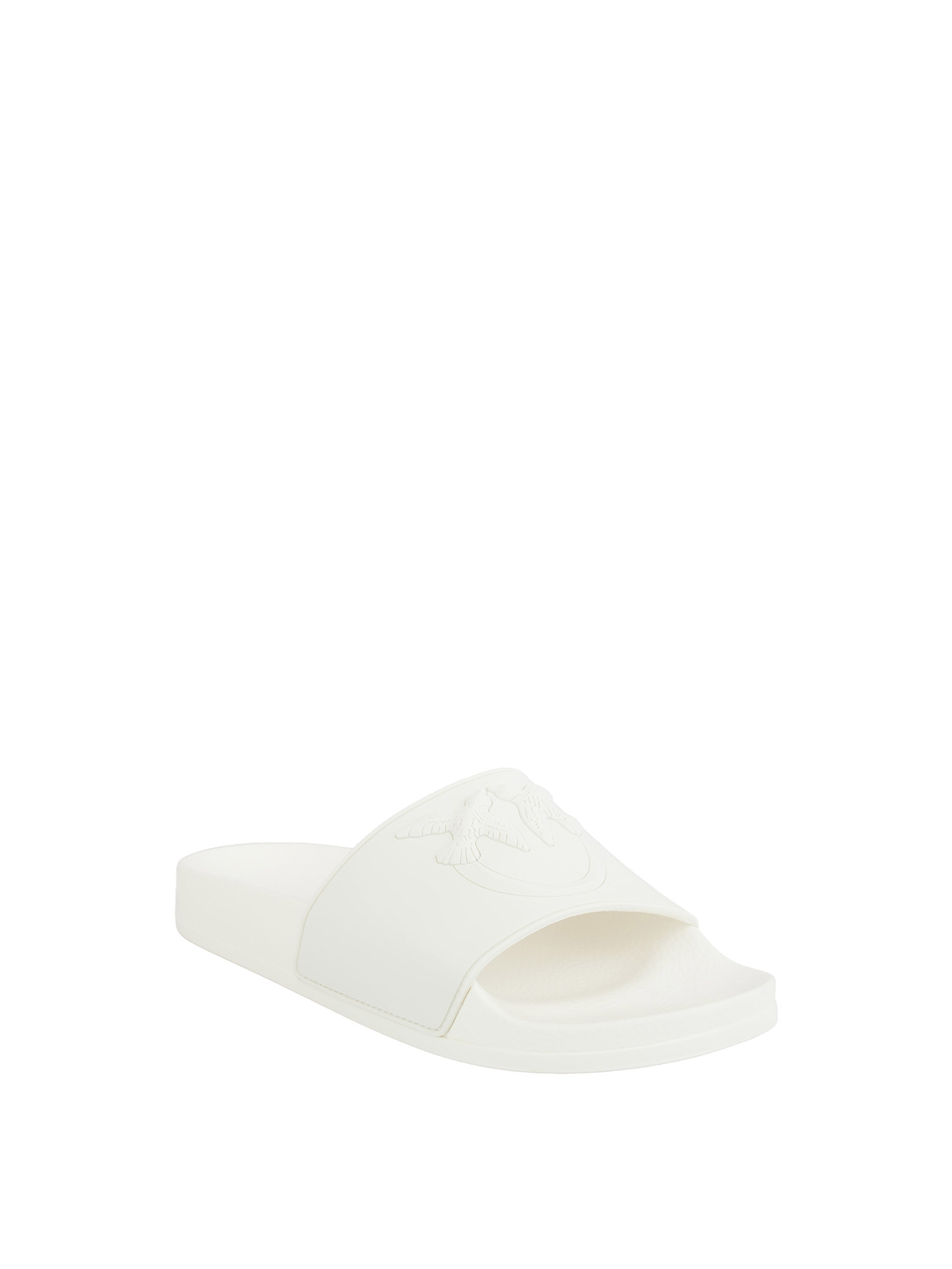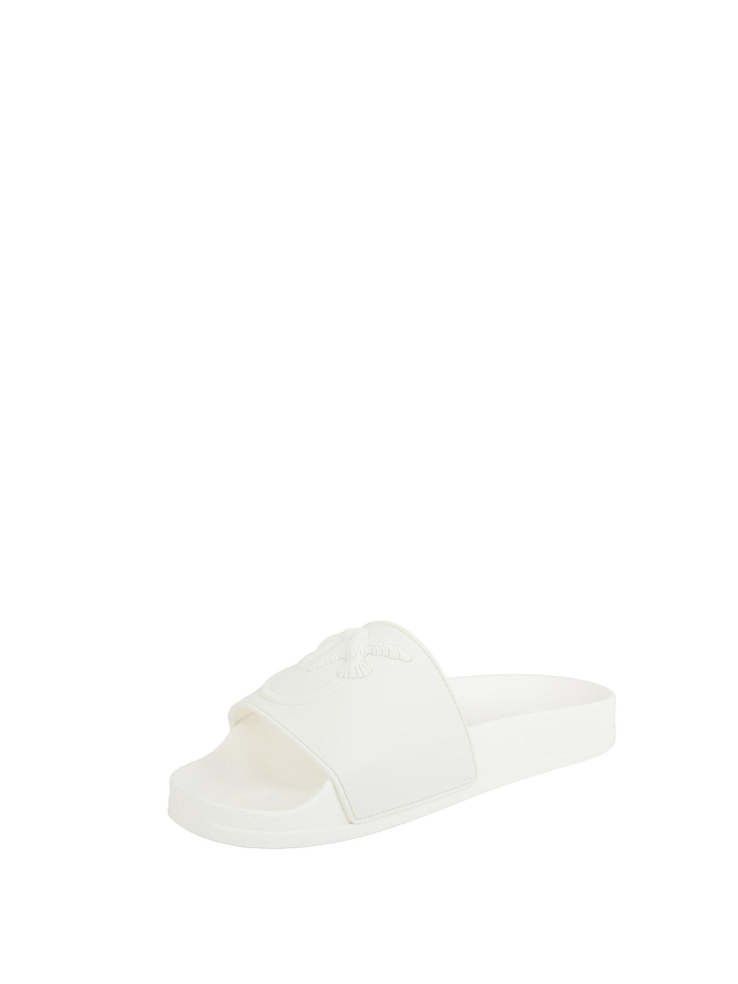 Ciabatte Pinko dal design chunky e contemporaneo, realizzate in gomma e caratterizzate da una spessa fascia superiore decorata dal logo Love Birdsin una maxi versione in rilievo. Con la loro estetica bold e la loro estrema comodità, queste slipper si prestano a svariate interpretazioni.