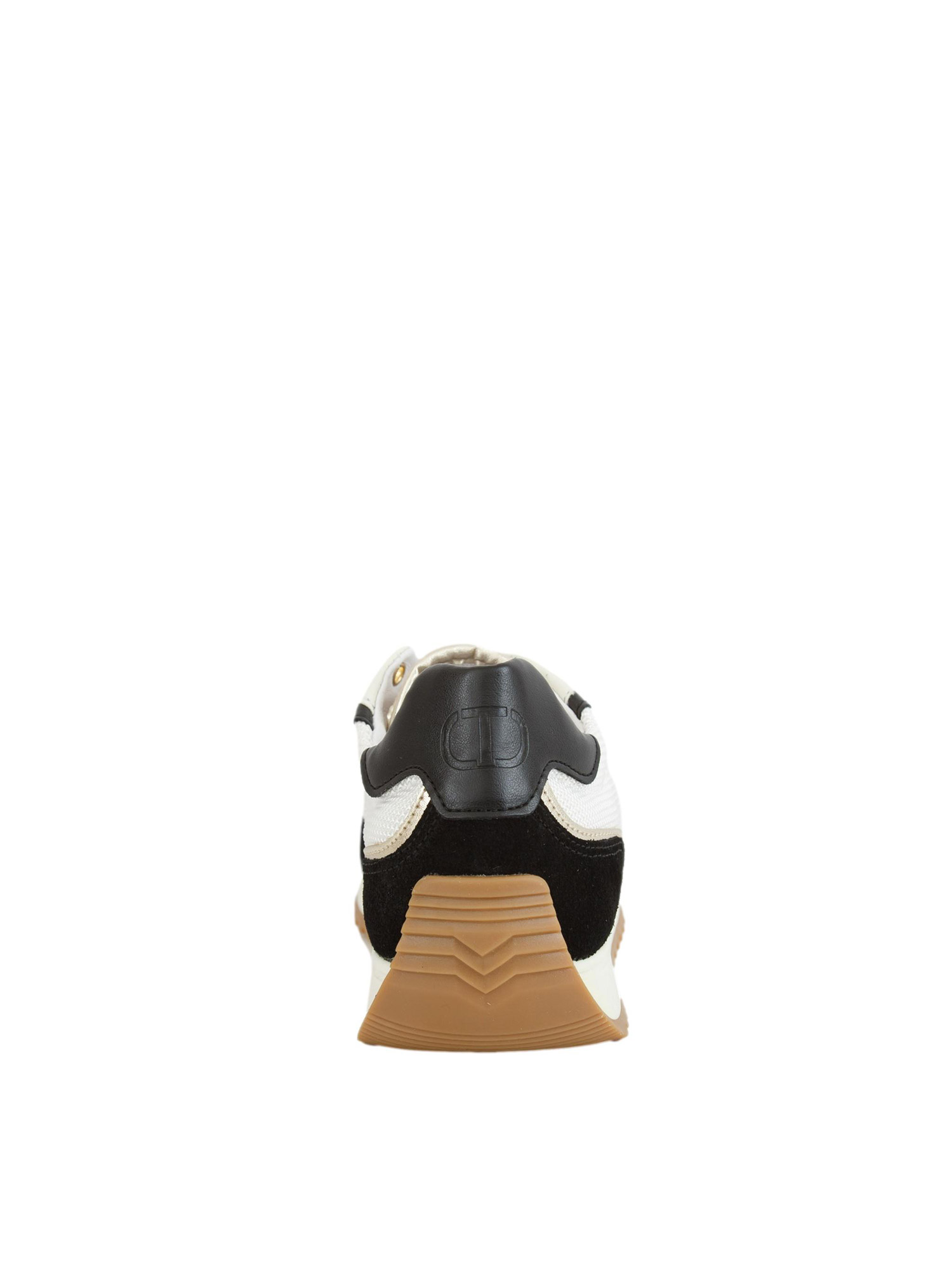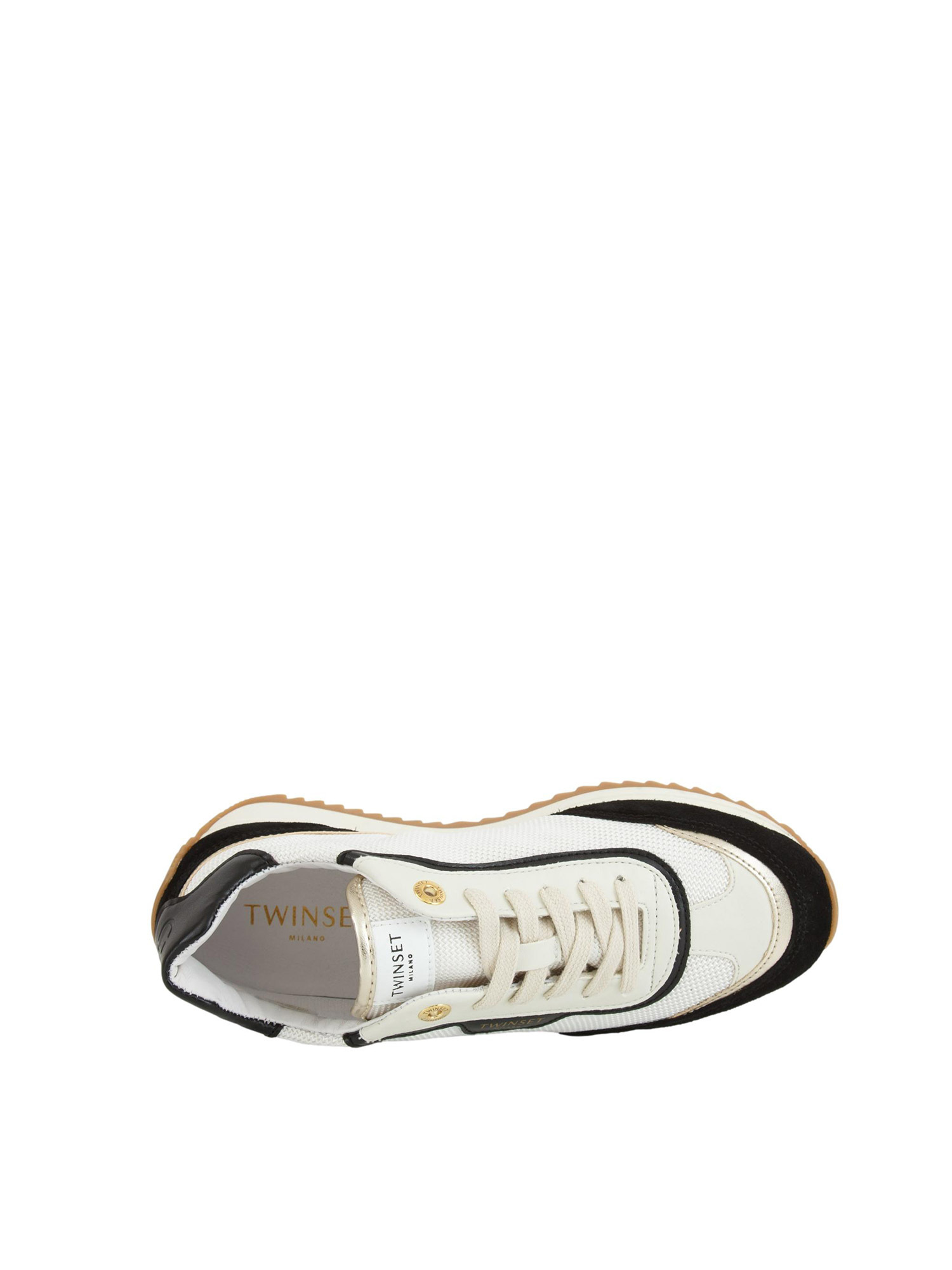Sneaker Twinset realizzate in pelle con dettagli a contrasto, chiusura lacci, logo lettering al fianco, fondo in gomma. Altezza fondo 6 cm.