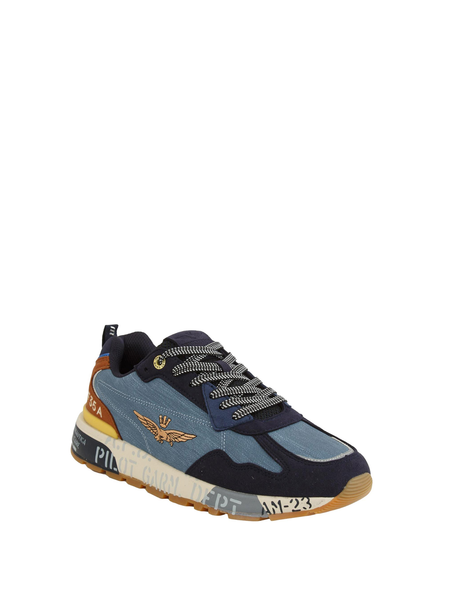 sneaker uomo Aeronautica Militare in ecopelle blu denim