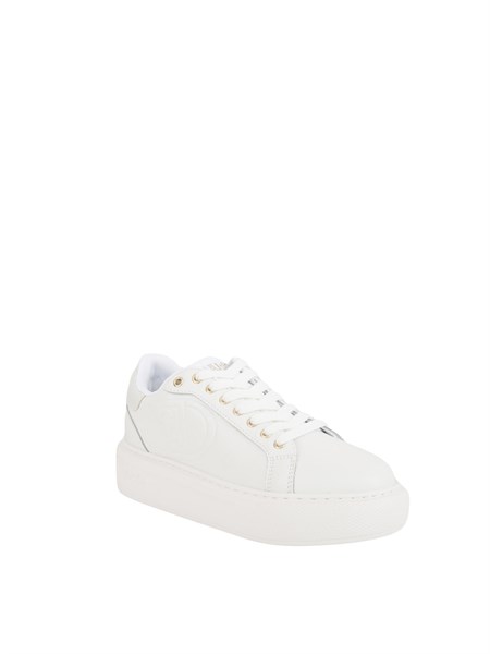 Sneakers bianche Liu Jo donna realizzate in pelle con maxi logo con perle ed etichetta con patch logo. Il design presenta lacci piatti, suola squadrata sul dietro e battistrada sul tallone con micro logo in rilievo. Altezza suola: 4,5 cm.