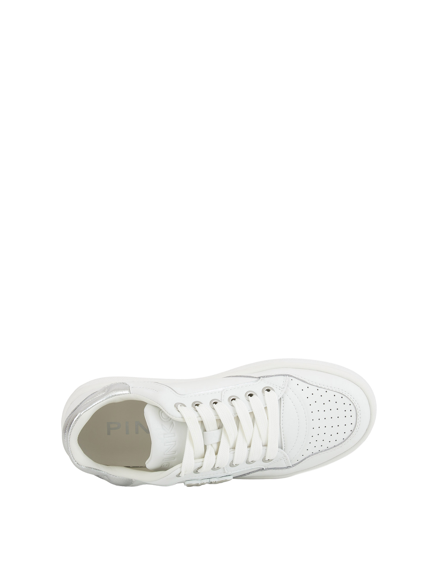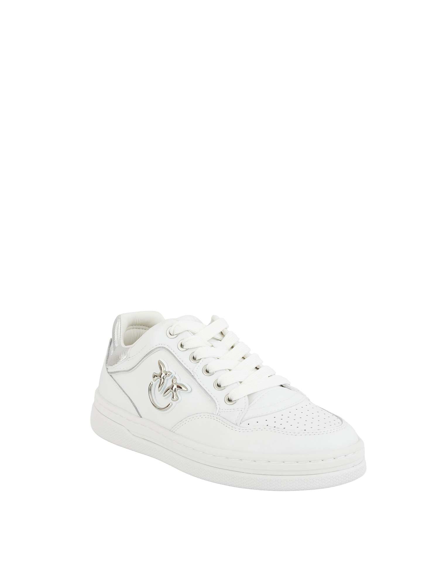 Sneakers Mandy Pinko realizzata in pelle liscia con dettagli in tessuto tecnico e punta con micro perforazioni. Dettagli luminosi su logo Love Birds in rilievo con finiture della tomaia e del tallone lucido a contrasto craquelé. Un modello essenziale del guardaroba femminile.