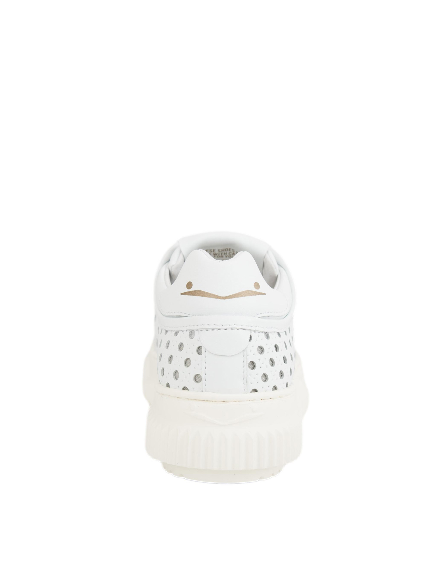 Sneaker in vitello perforato. Soletta interna estraibile, fondo a cassetta in gomma.