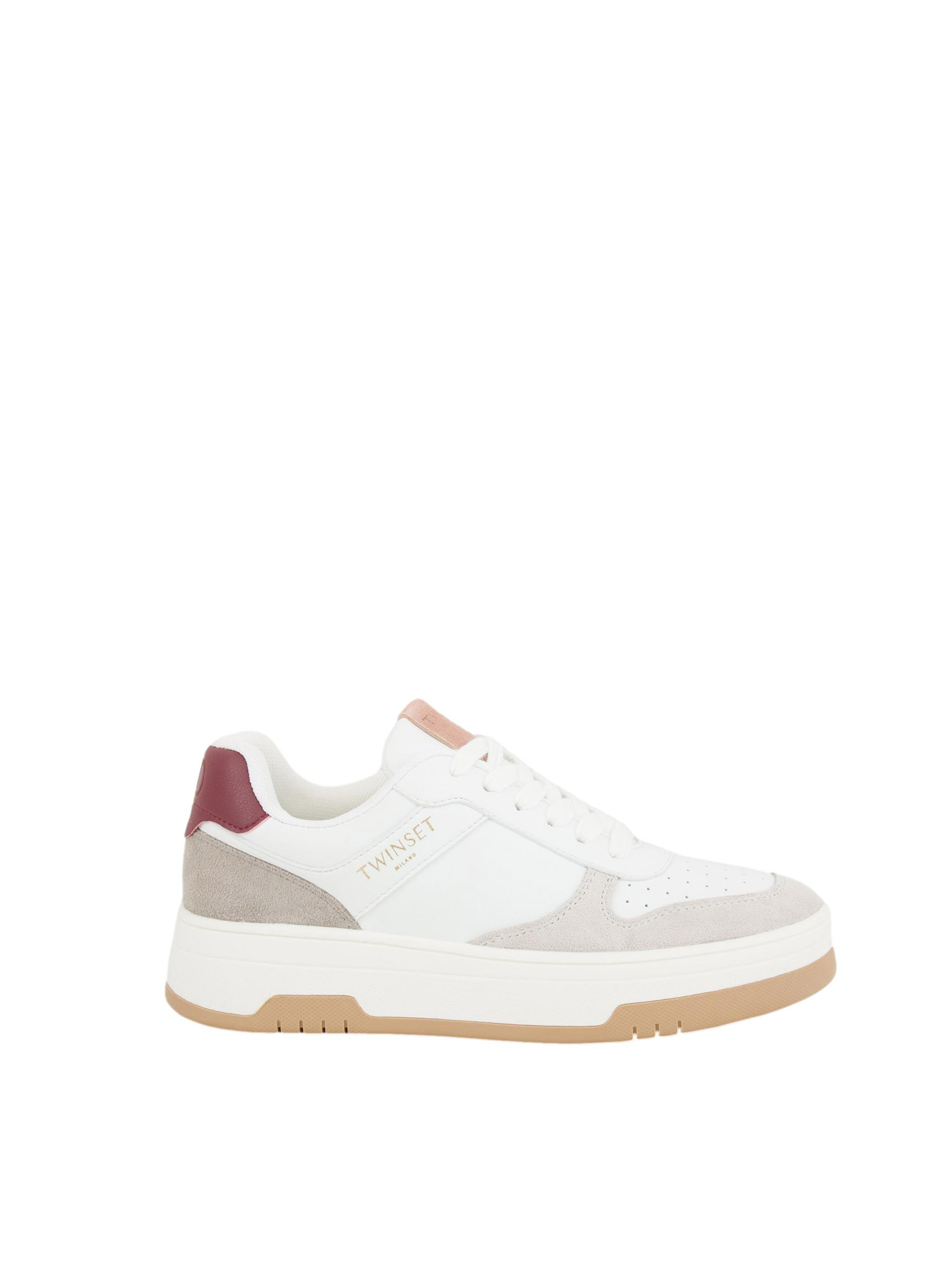 Sneakers da donna Twinset con fondo alto, trafori sopra, stampa logo al fianco, chiusura con lacci, fondo in gomma e dettagli in contrasto colore.