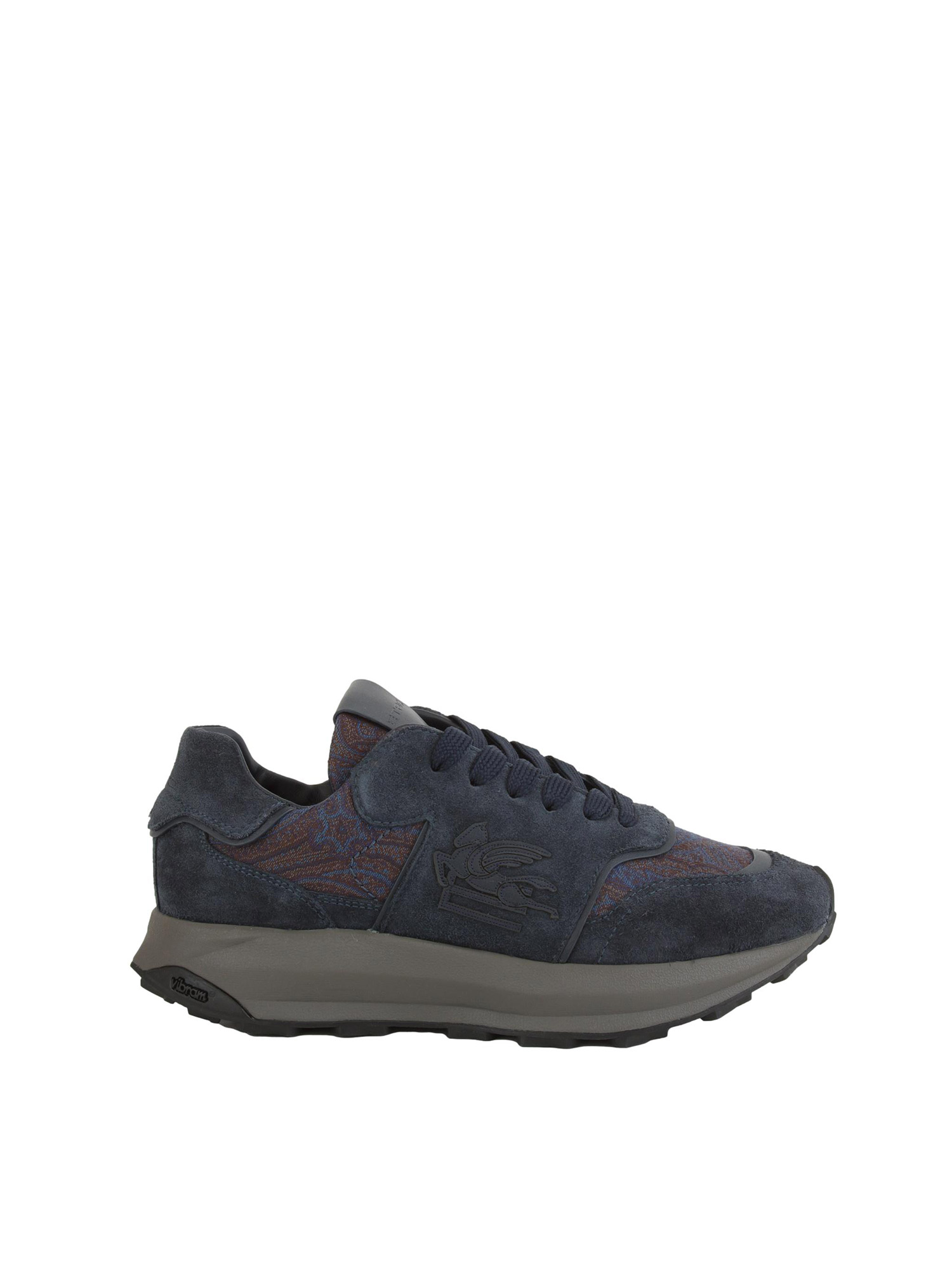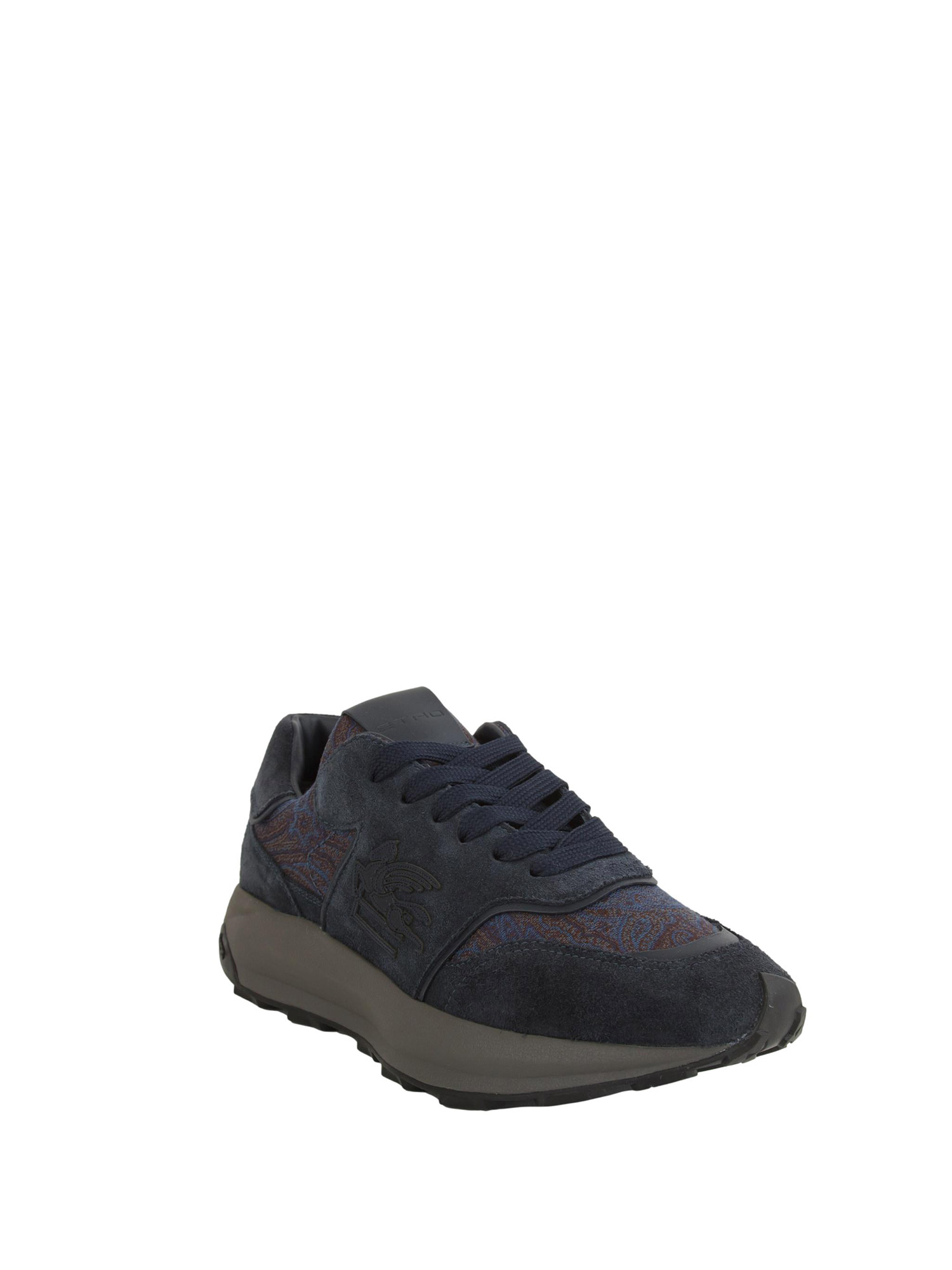 Sneakers uomo Etro in suede e tessuto jacquard Paisley blu