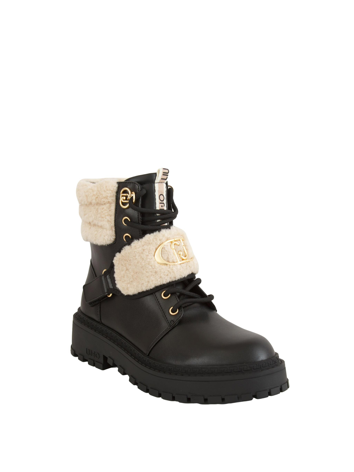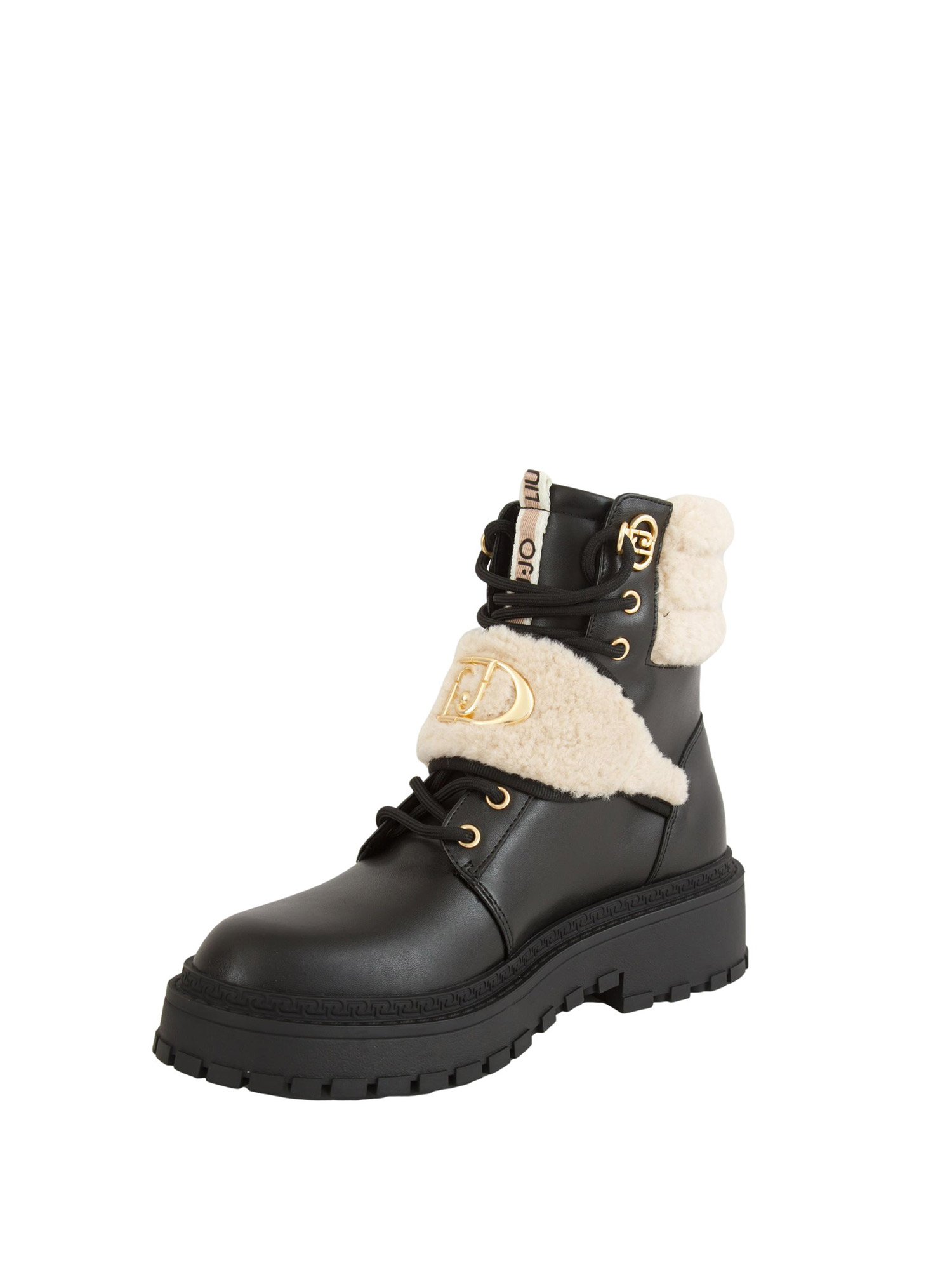 Stivali anfibi Liu Jo donna Rumi 40 realizzati in pelle con dettagli in pelliccia sintetica, maxi logo monogram, chiusura con velcro e occhiello con logo monogram. Dotati di loop con logo stampato, fondo con guardolo logato e battistrada dentellato. Altezza suola: 5 cm. Altezza gambale: 15 cm.