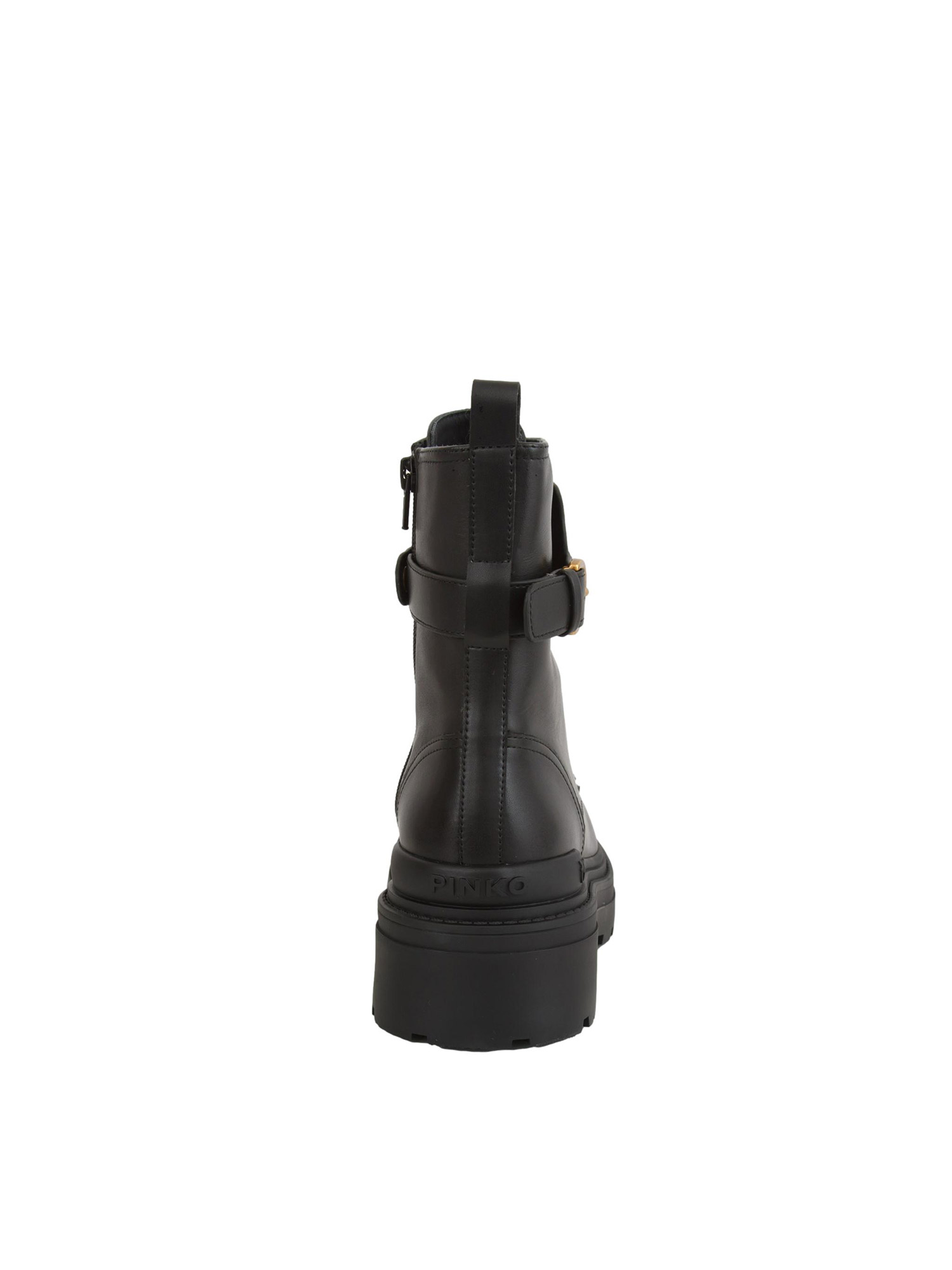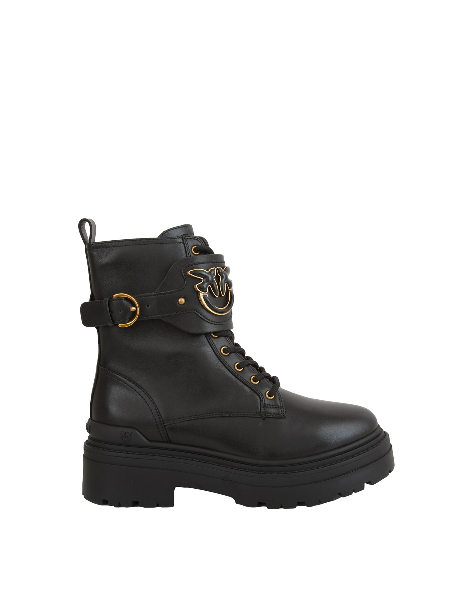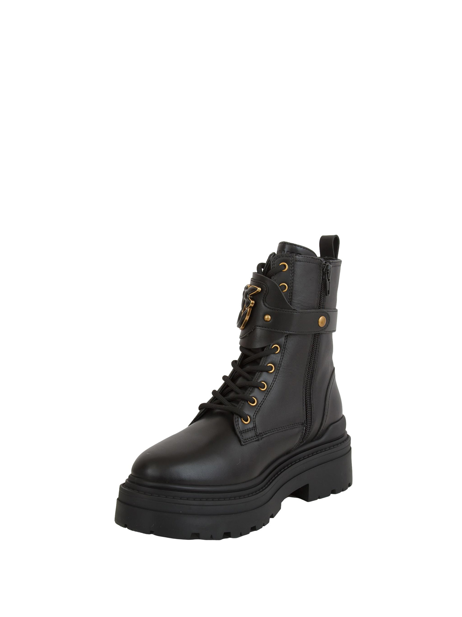 Stivali anfibi stringati Pinko Mia 07 caratterizzati da cinturino logo regolabile con fibbia sul davanti. Il modello, realizzato in pelle, è dotato di una zip sul lato interno, di passante posteriore e di suola carrarmato in gomma con tacco 5,5 cm. Gli anfibi sono l'ideale per conferire ai tuoi look casual un tocco di audacia in più.