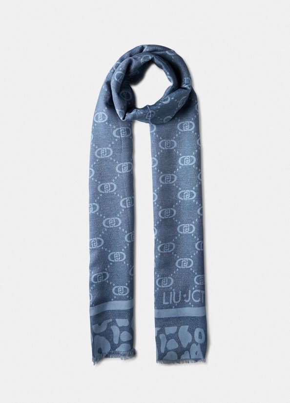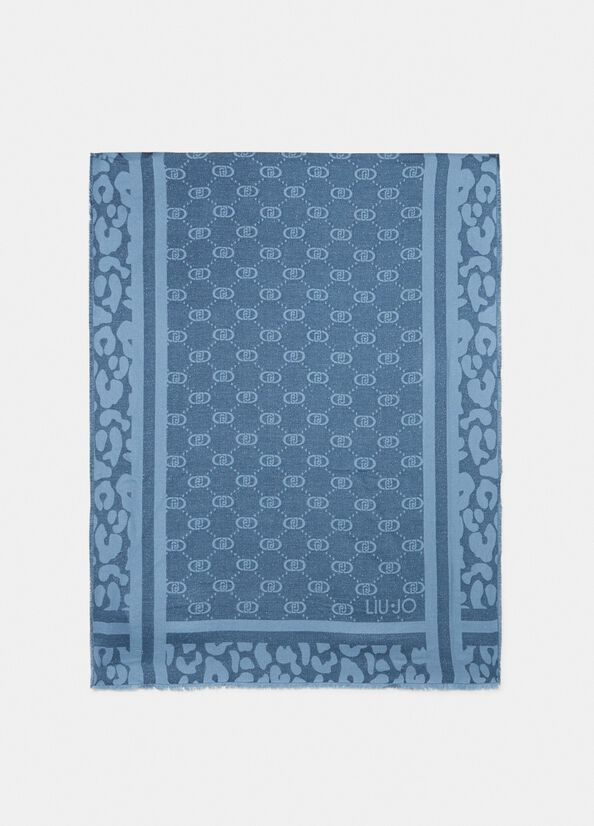 Stola Liu Jo in viscosa e lurex azzurra logo monogram